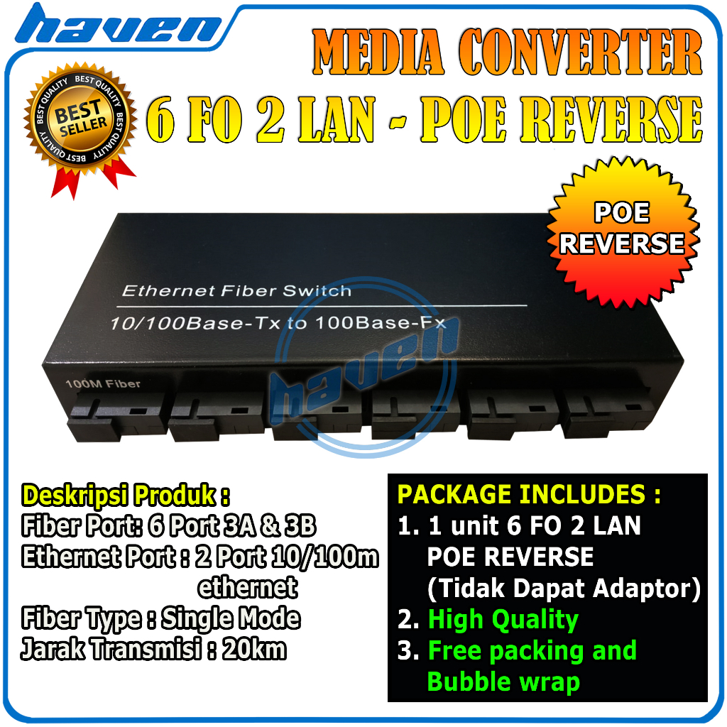 Media Converter 6 Port FO 2 Port LAN POE / 6 Port SC Fiber 2 Port RJ45 10/100 Mbps Fiber Optic Ethernet Converter Switch / 6 FO 2 LAN Konverter