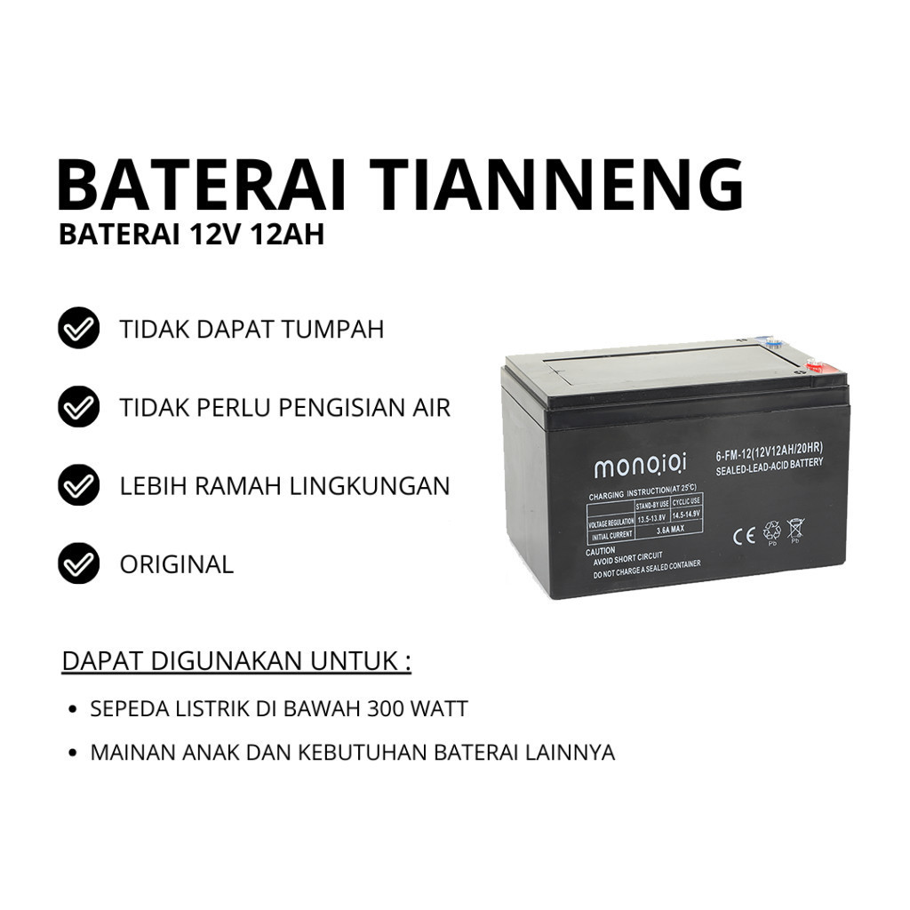 4pcs 48V BATERAI / AKI SEPEDA LISTRIK 12V 12AH TIANNENG ORIGINAL DAPAT DIGUNAKAN UNTUK MAINAN ANAK 60V BATERAI
