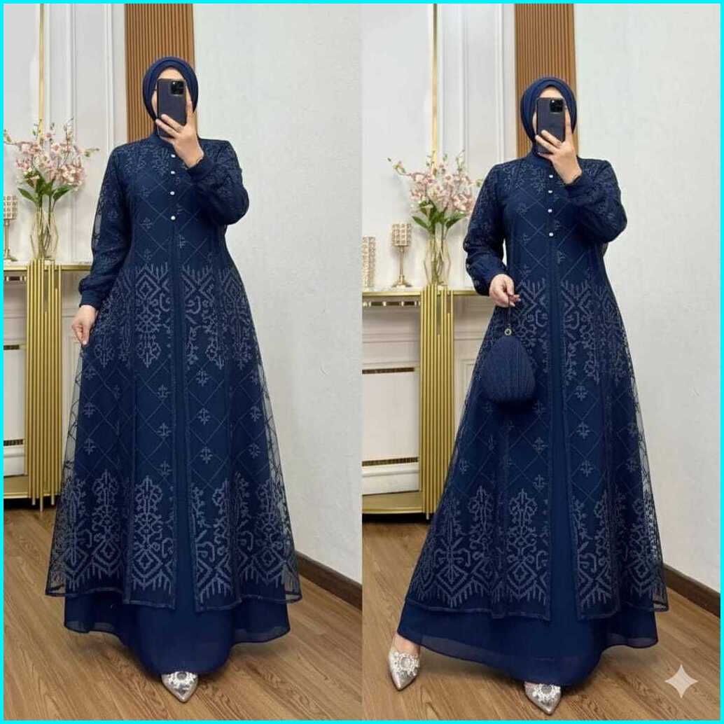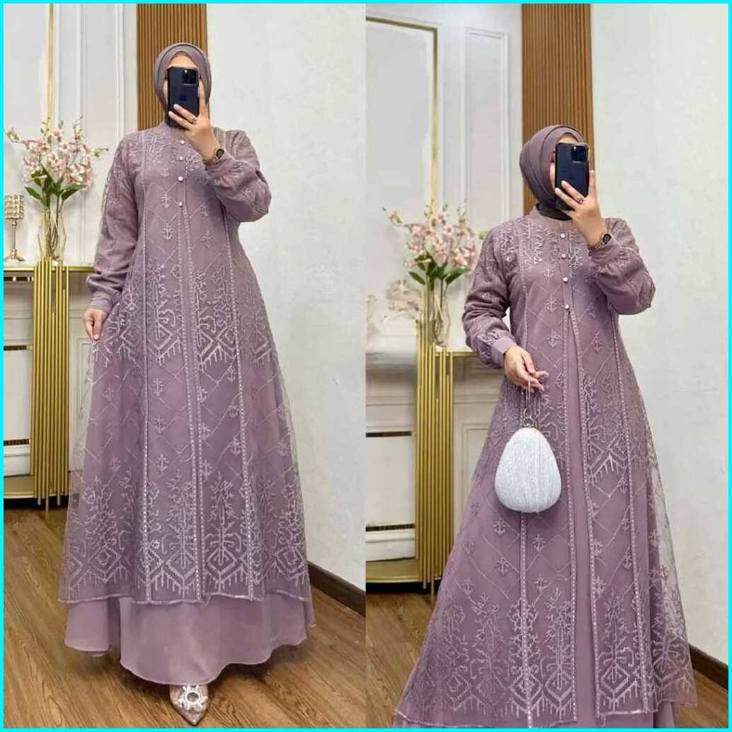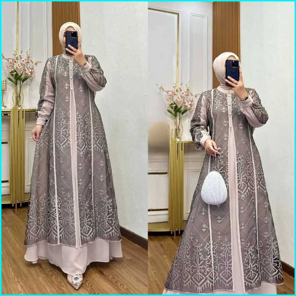 Dress Mahogany Denara Bahan Ceruty Armany Mix Brukat Aplikasi Swarovski Baju Pesta Mewah Viral 2025