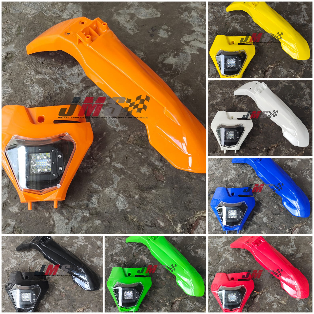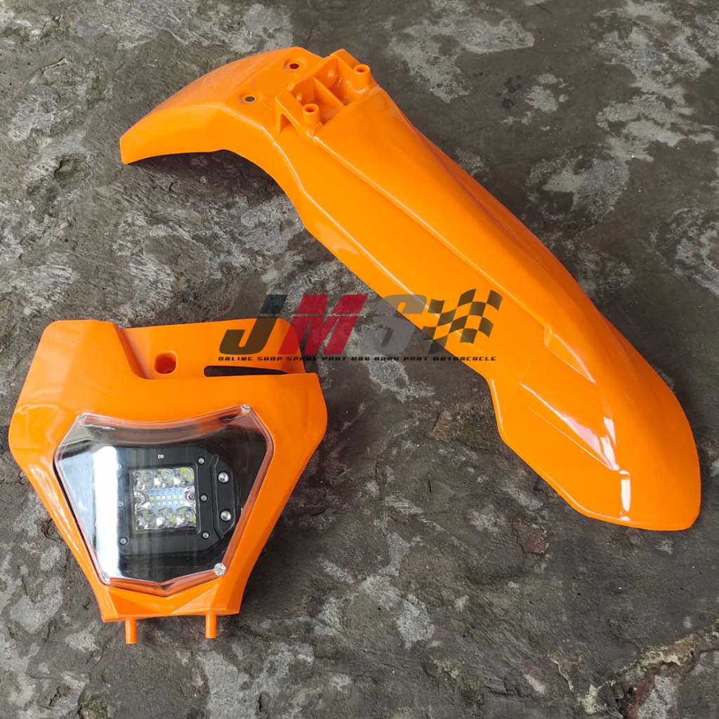 Spakbor Depan Ktm 250 2017 Plus Headlamp Batok Lampu Depan Ktm250 12 Led Supermoto Universal