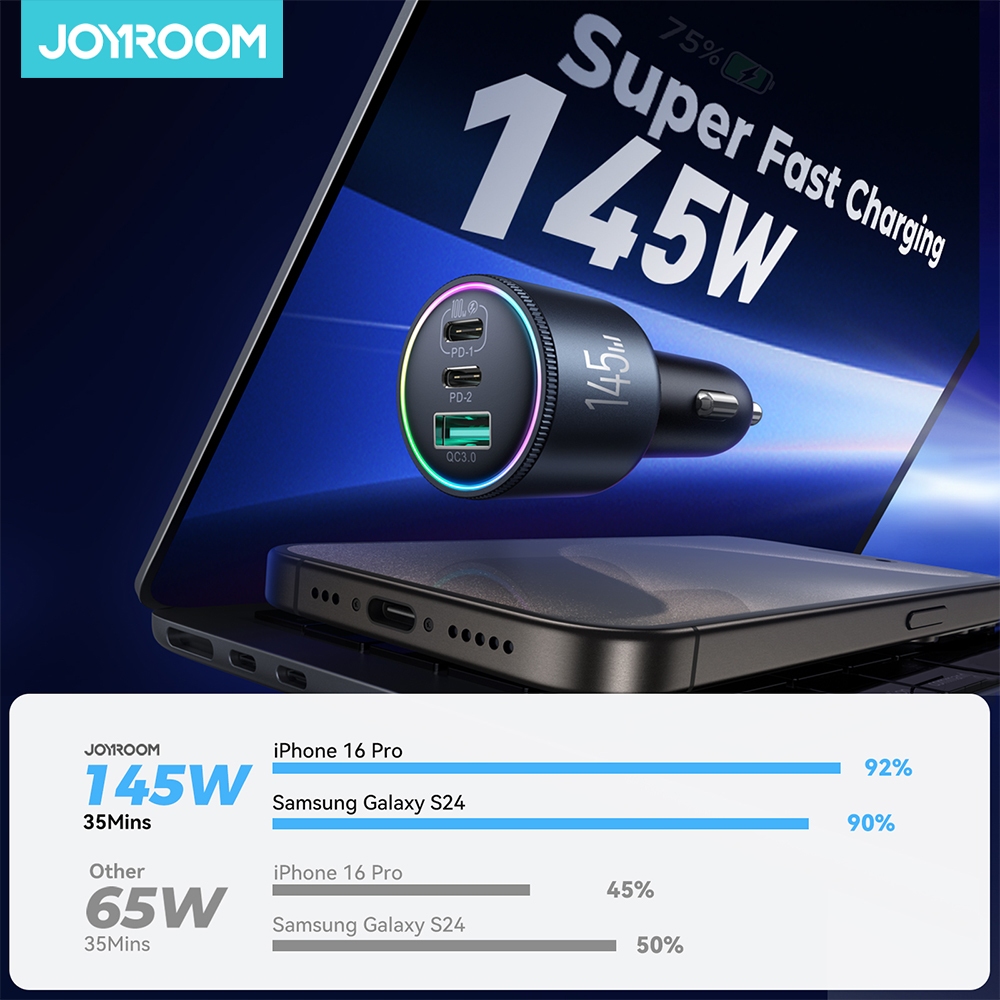 JOYROOM CCN07 Car Charger Fast Charging 145W 3-Port 2PD+1QC3.0