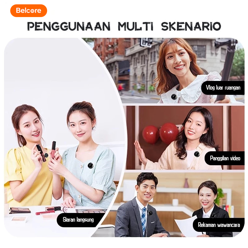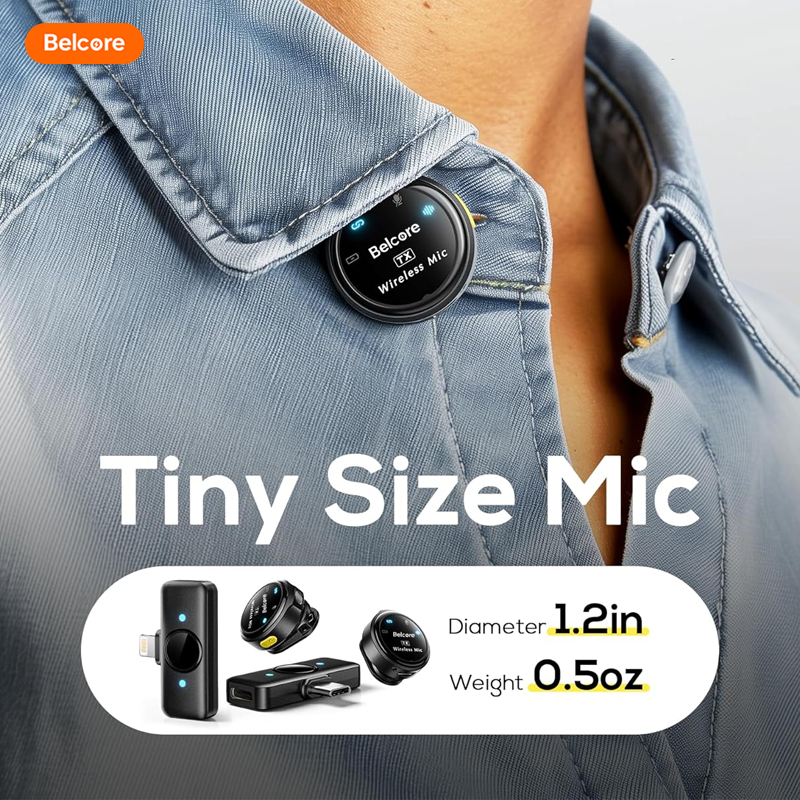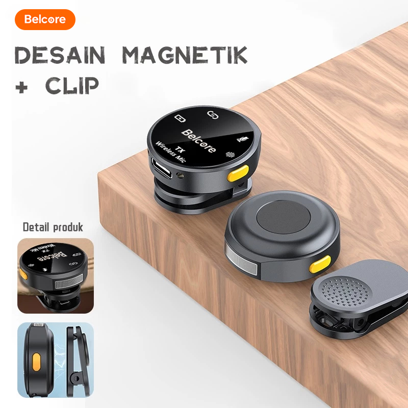 Belcore D80 Magnetic Wireless Clip on Microphone Dual Lavalier HP Plug & Play Lapel Mic with Charging Case Mikrofon