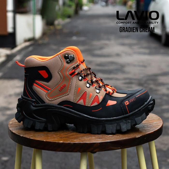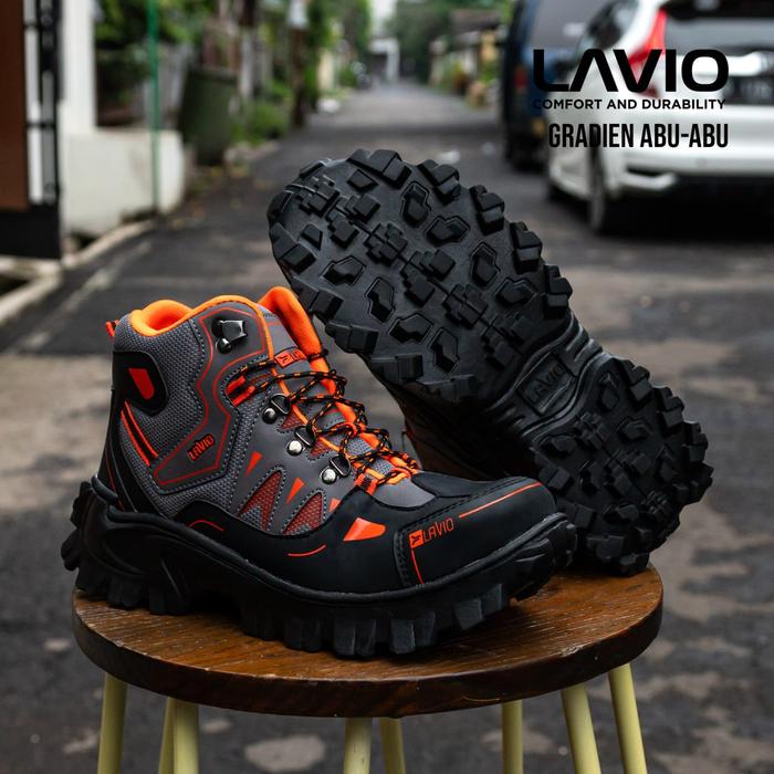 SEPATU SAFETY BOOTS PRIA OUTDOOR HIKING INDUSTRI LAVIO GRADIEN ORIGINAL UJUNG BESI INDONESIA BROWN HIKING SHOES - ABU, 3