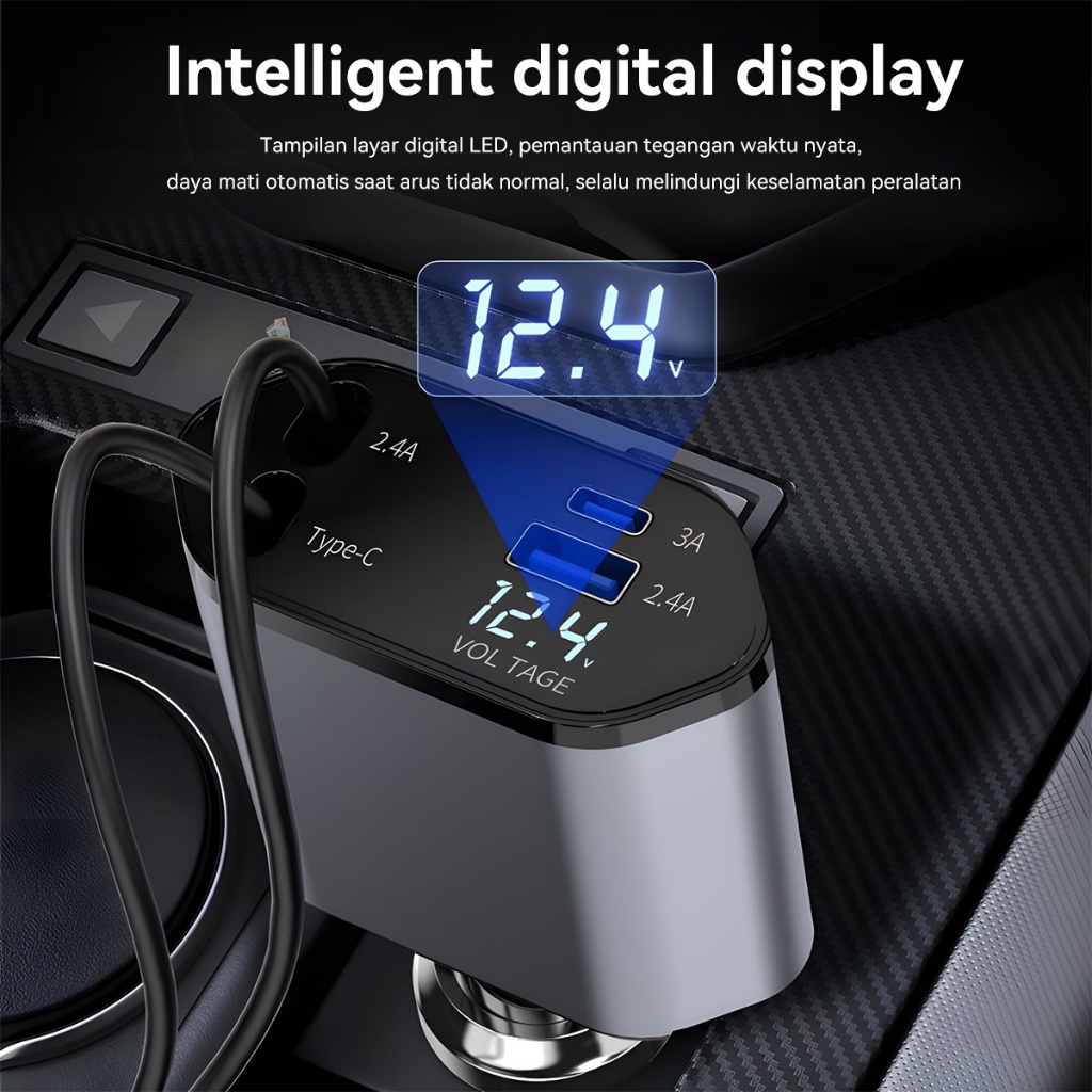 Jovitech CC20 Cable Car Fast Charger Colokan Mobil 4 In 1 PD 120W USB Type C & Lightning Fast Charging With Retractable Cable