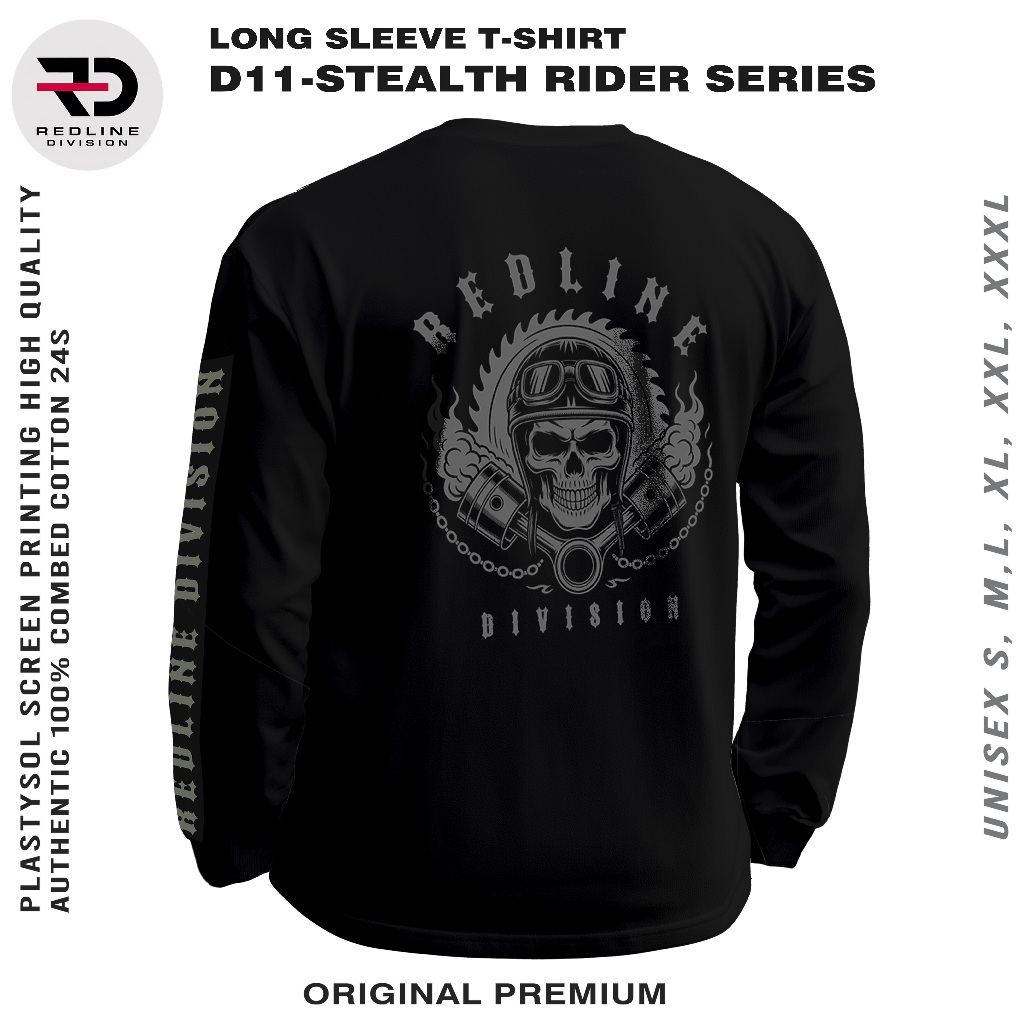 REDLINE CLOTHES-D11 Kaos Lengan Panjang Hitam Model Tengkorak Premium Katun Combed 24s