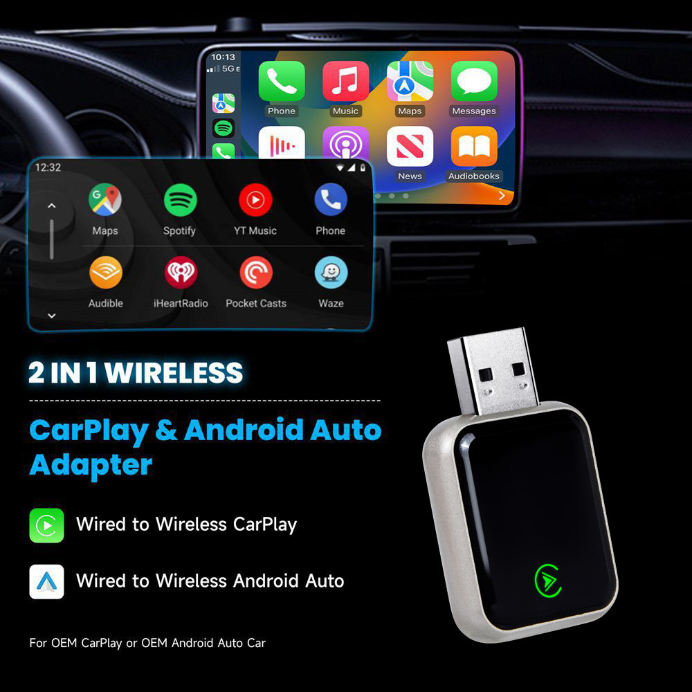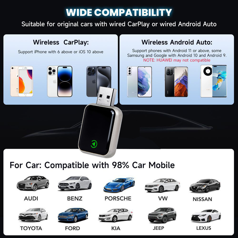 EZTECH New K7PRO Innovation Portable Wireless Apple Carplay Android Auto 2 in 1 Adapter , Car Play Android Auto Wireless Adapter, Wireless