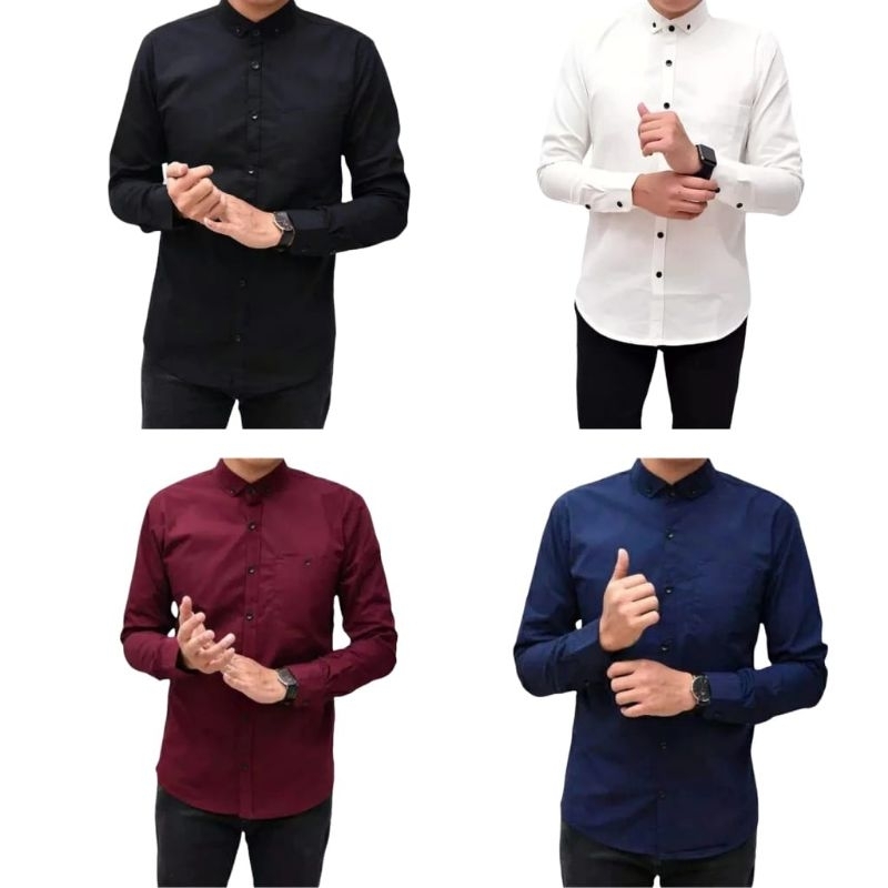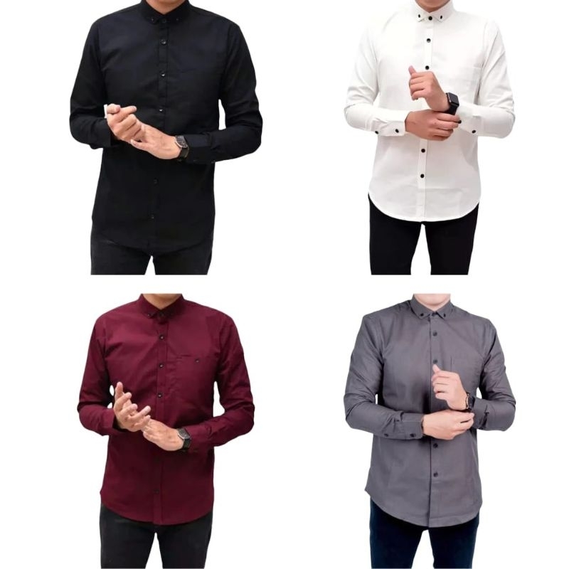 Paket Hemat Promo 4 Pcs Kemeja Pria Polos Lengan Panjang Casual Formal Kantor Bahan Halus Katun