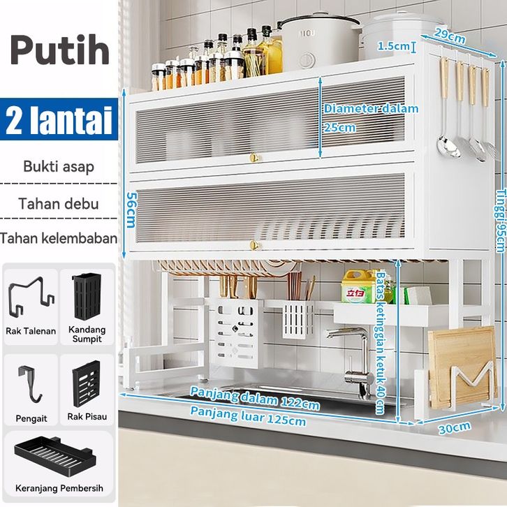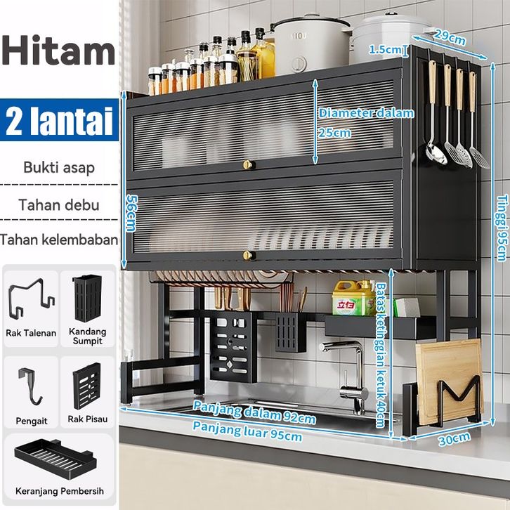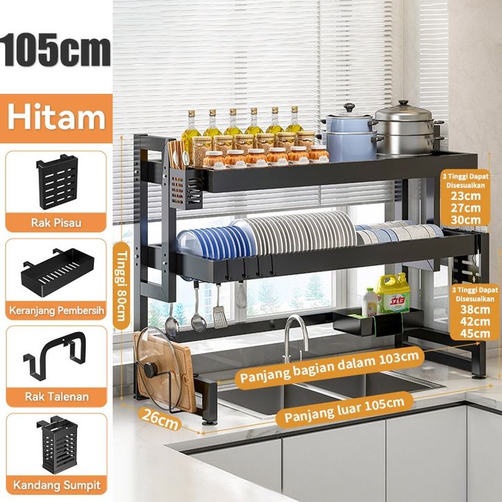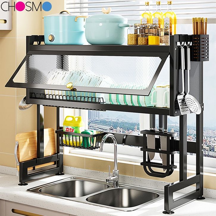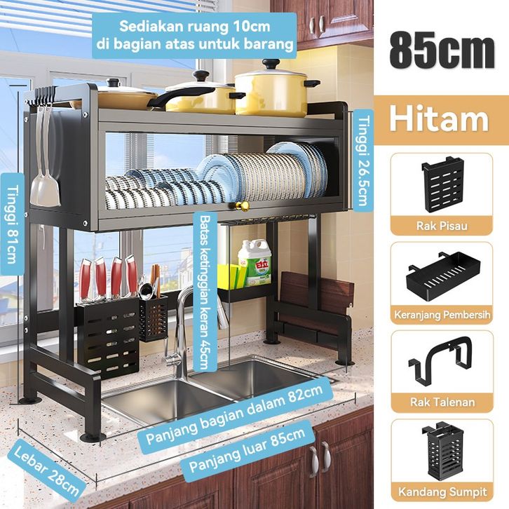 Rak Cuci Piring Wastafel Dapur Stainless Steel Anti Karat Multifungsi Dengan Penutup