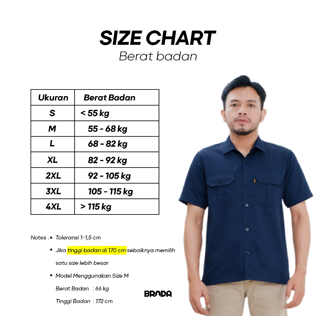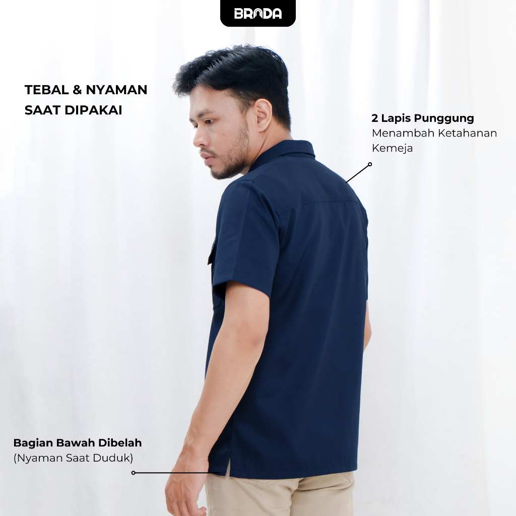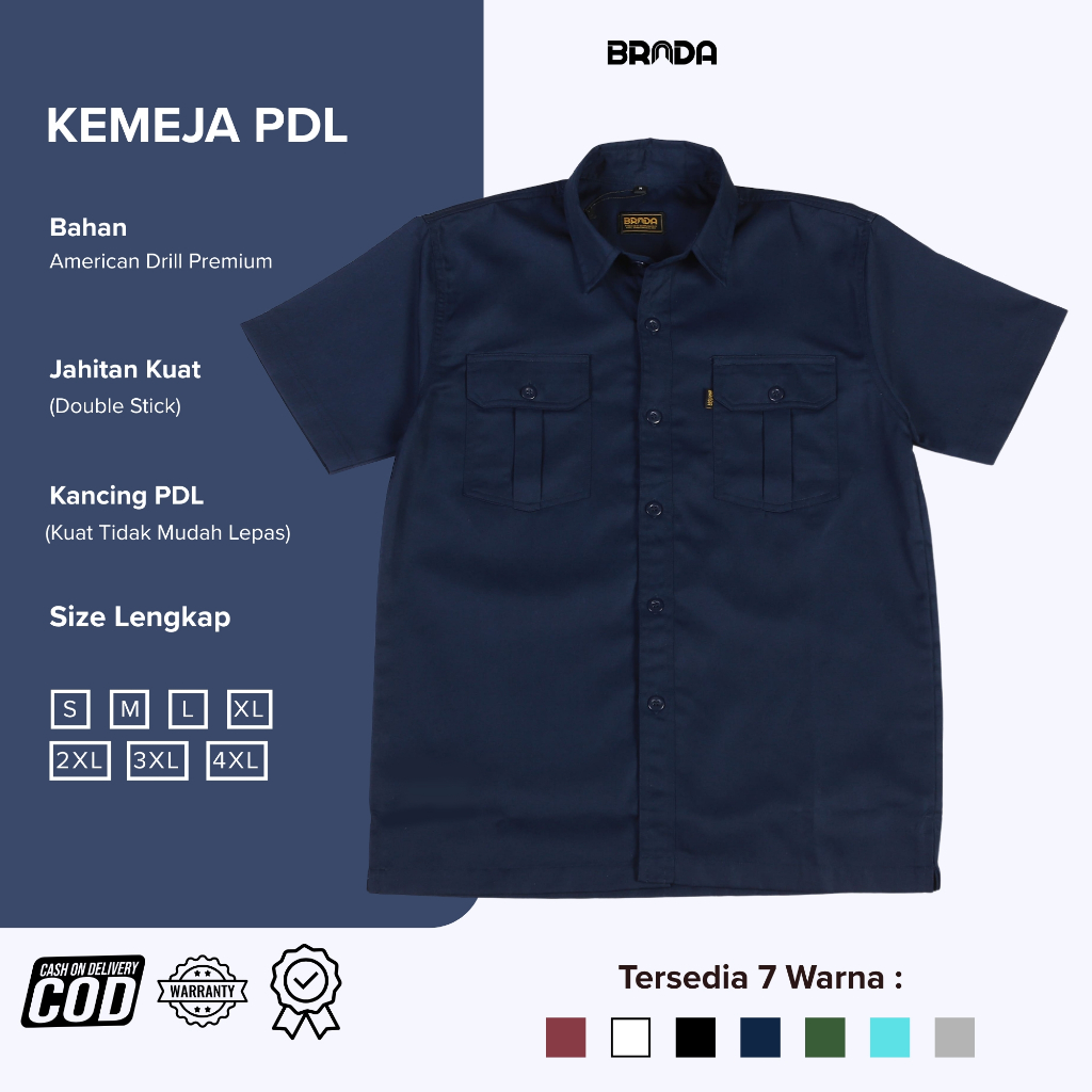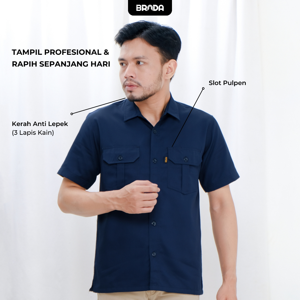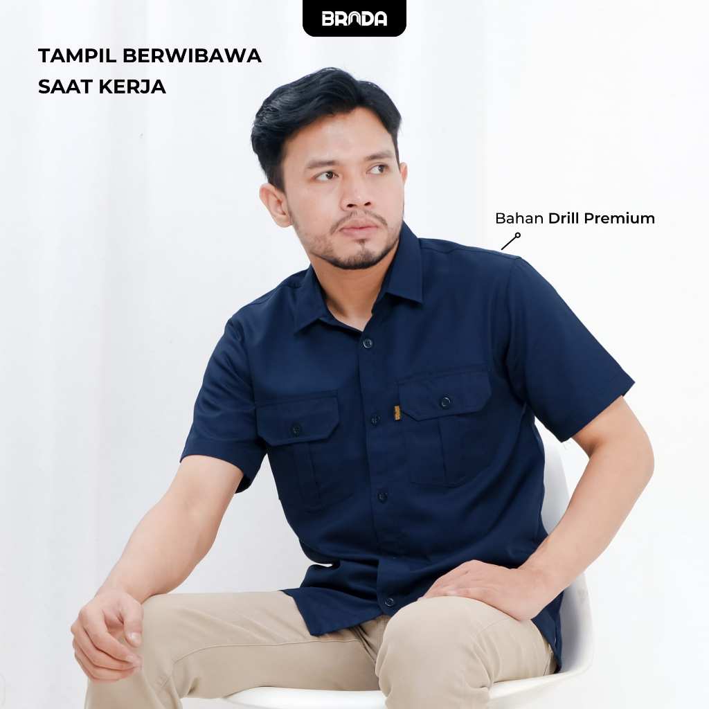 Brada - Kemeja Pdl Pdh Drill / Baju Atasan Seragam Kerja Lapangan Pendek Biru Navy