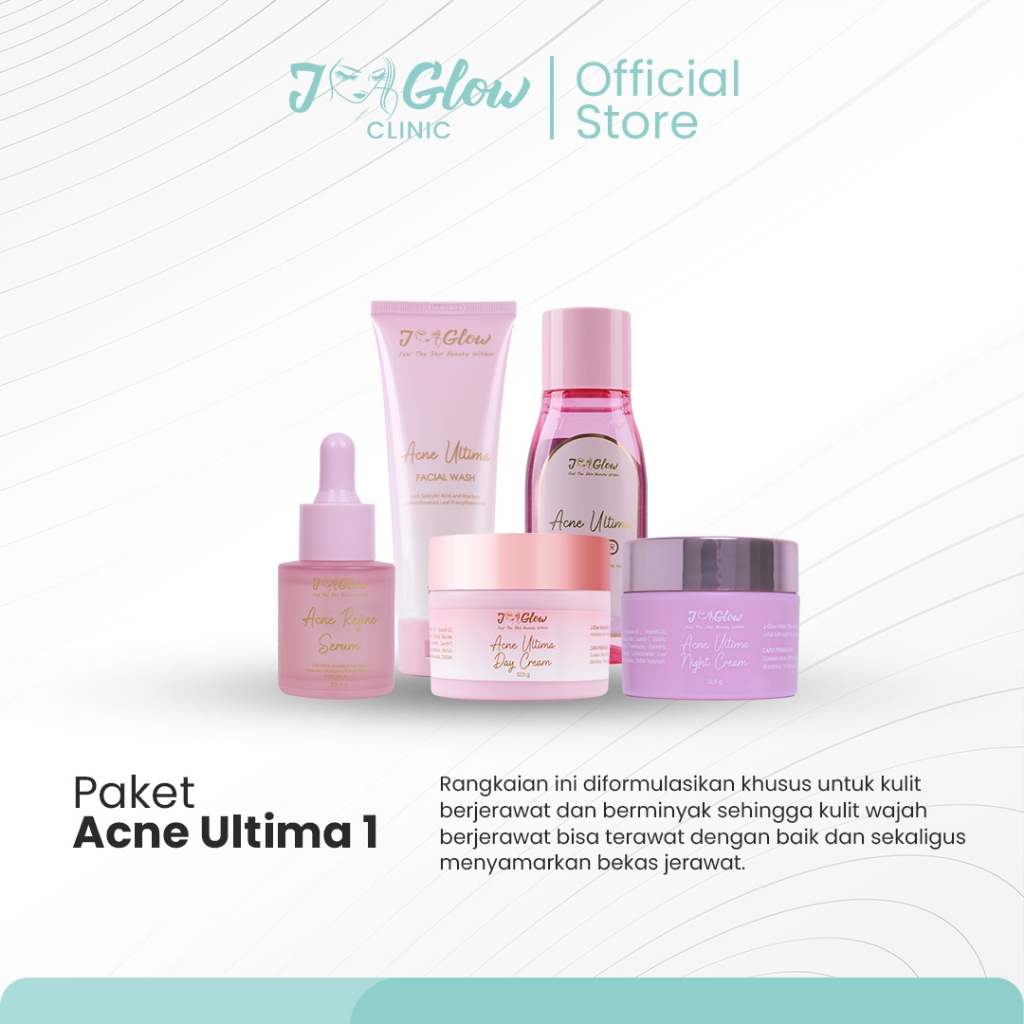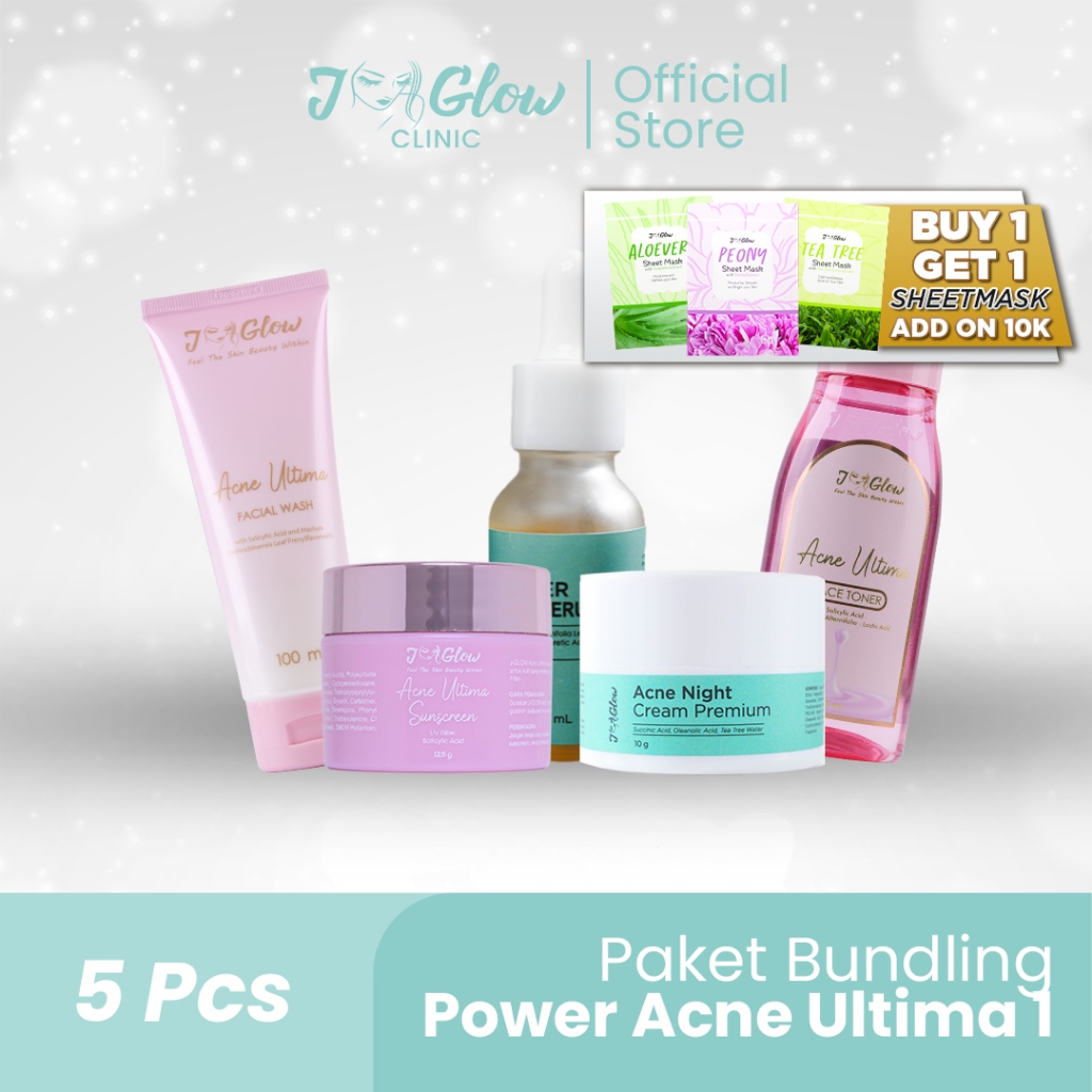 JGLOW CLINIC Paket Power Acne 1 | Paket Acne Ultima Type 1 Perawatan untuk wajah Berjerawat dan Berminyak - 5pcs