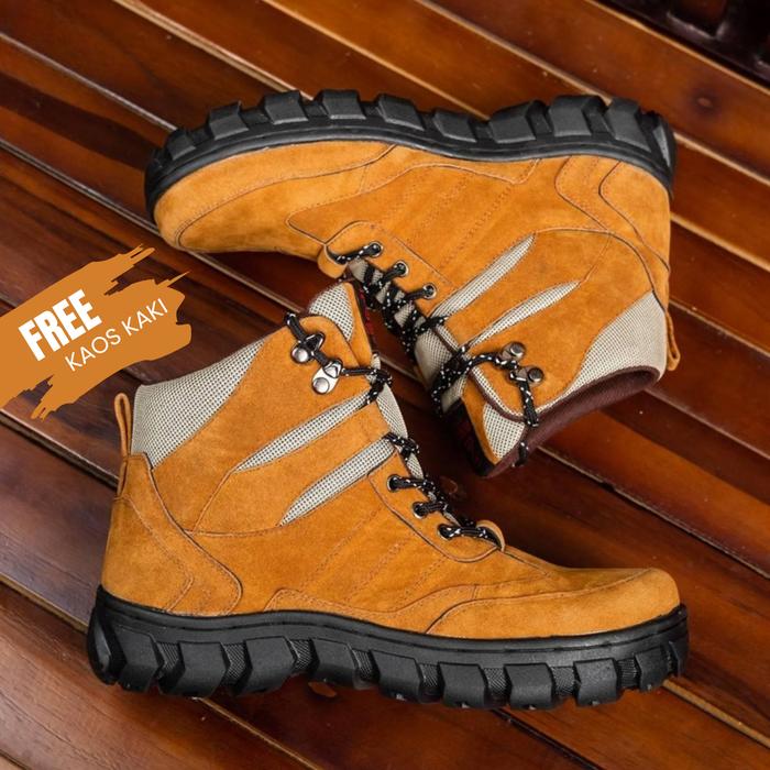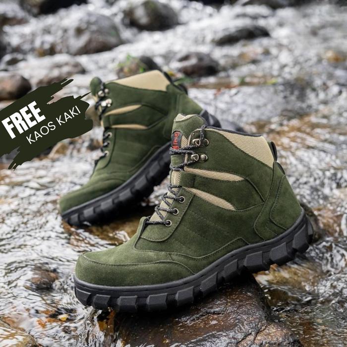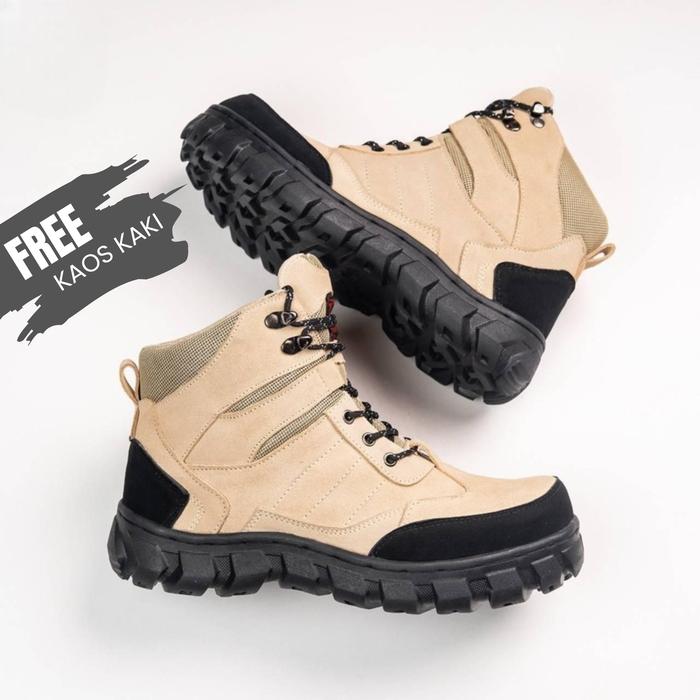 SEPATU BOOTS PRIA SAFETY OUTDOOR HIKING GUNUNG ORIGINAL ZENIFA TACTICAL CREAM GURUN COWOK KEREN HIGH CUT PREMIUM - VARIA