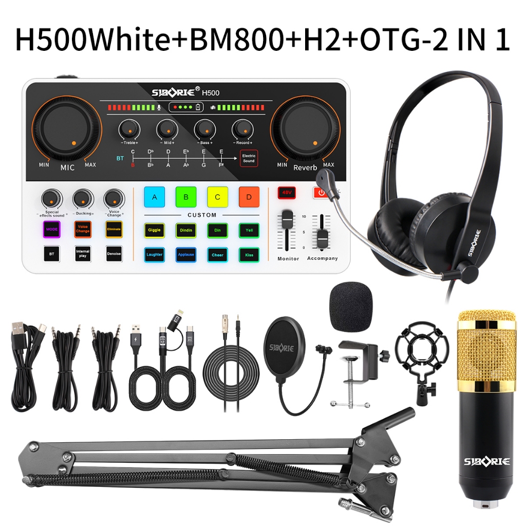 Siborie Paket Komplit Soundcard H500+BM800 Mic+H2 Headphone+OTG-2 IN 1 Set With Kurung Kantilever Mendukung