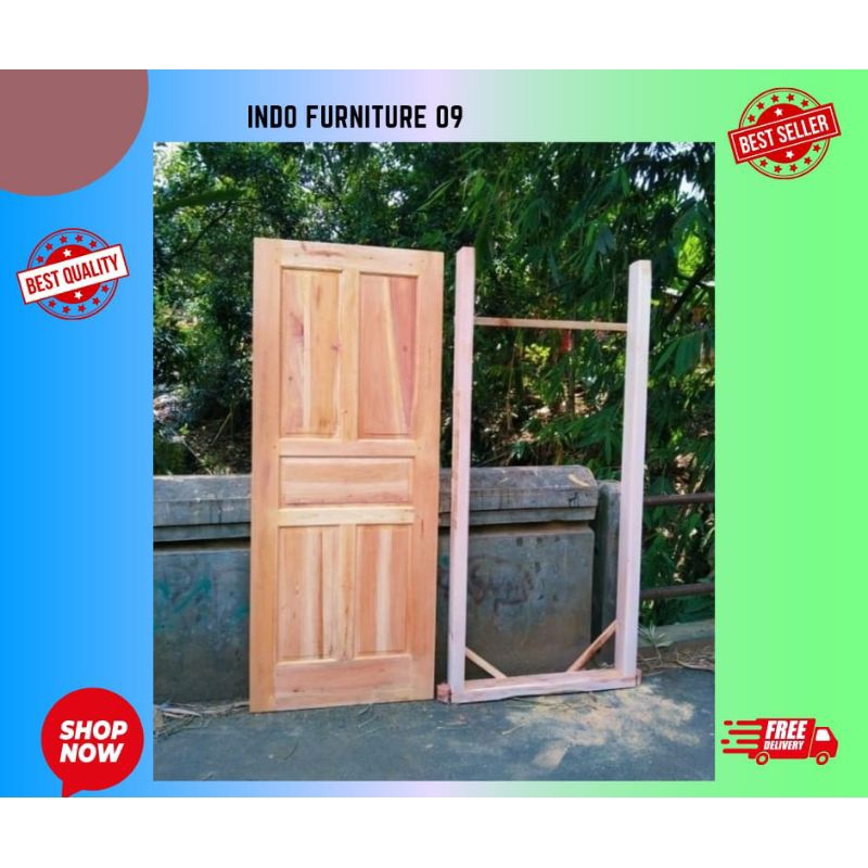 Ready stock daun pintu dan kusen 1set pintu rumah kayu mahoni ukuran pintu 200x80