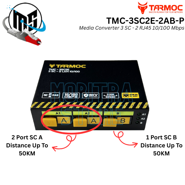 Tarmoc TMC-3SC2E-2AB-P | Media Converter Switch 3SC 2LAN / 3 SC 2 LAN 10/100Mbps POE IN 5-24 Volt | 3FO 2LAN / 3 FO 2 LAN 10/100 Mbps