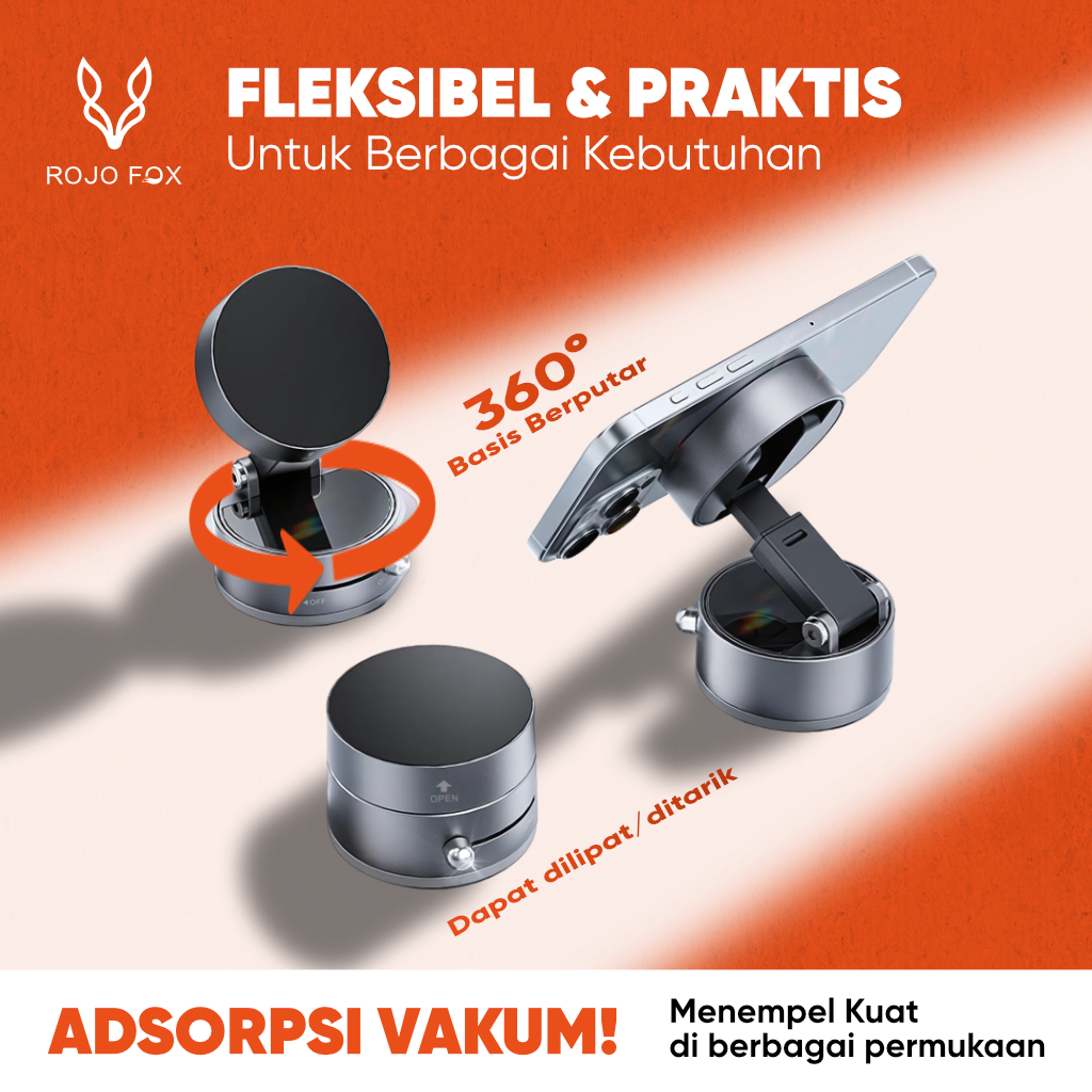 ROJO FOX Holder HP Phone Holder Magnetic Dudukan HP Magnet 360° Rotasi Car Mount Stand HP Holder RF-S02 | Hisap Vakum Kuat | Mobil, Meja