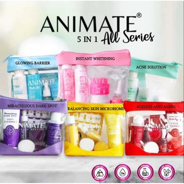 ANIMATE Paket SKINCARE Series 5in1 - Whitening | Glowing | Acne | Dark Spot | Anti Aging | Balancing | BPOM