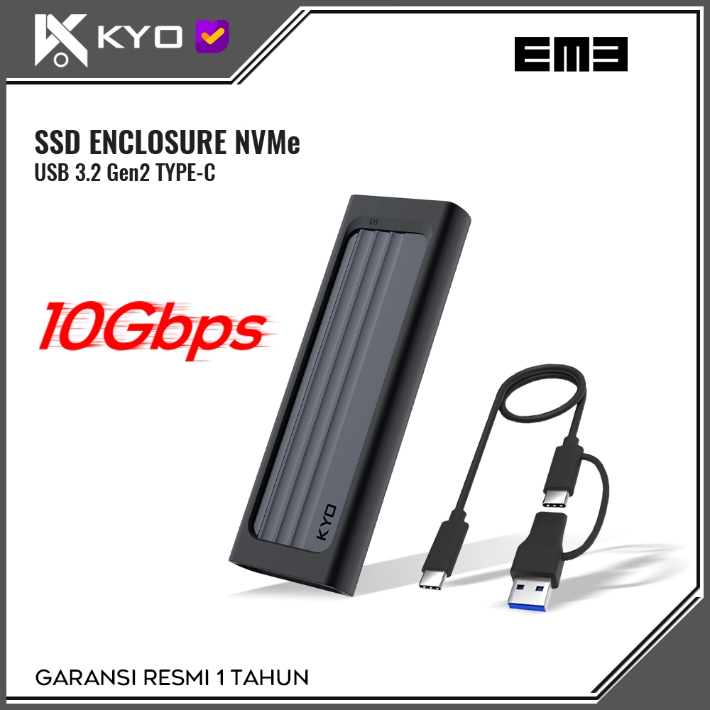 KYO EM3 M2 NVMe Enclosure 10Gbps SSD NVME USB Type C 3.2 with USB Hub
