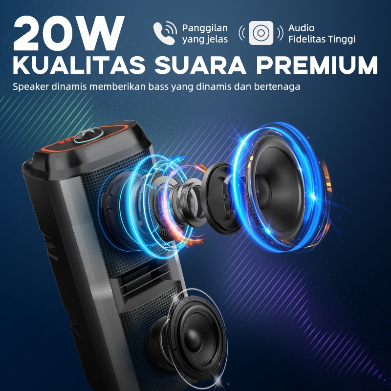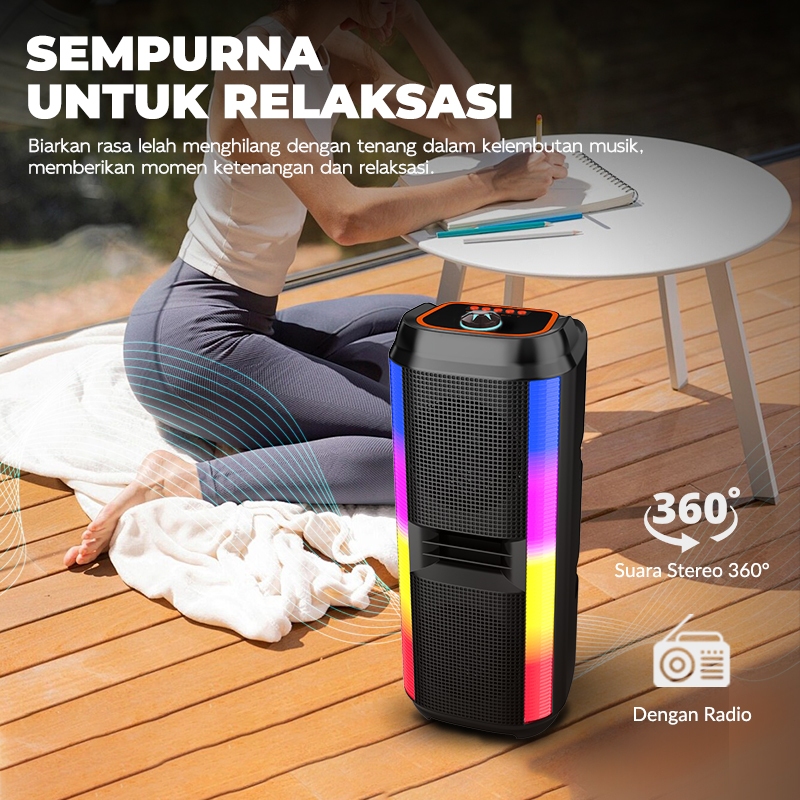 MAlKET Speaker Bluetooth Karaoke Super bass Subwoofer 2Mic Wireless USB/FM/AUX/RGB Garansi 3 tahun
