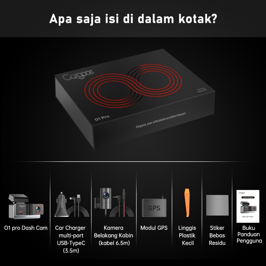 Cargoos O1 pro Dash Cam Mobil 2 Kamera 2K+1080P GPS Wifi G-sensor Kontrol Aplikasi Car Dashcam Kamera Mobil