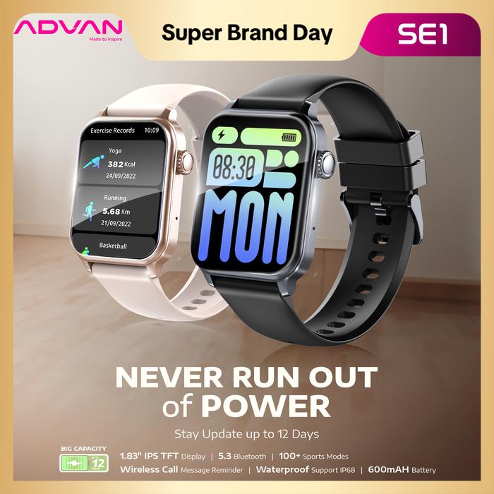 ADVAN SMARTWATCH SE1 AI VOICE ASSISTANT IPS 1.83” WIRELESS BLUETOOTH CALL WATERPROOF IP68 600MAH STANDBY TIME UP TO 30 D