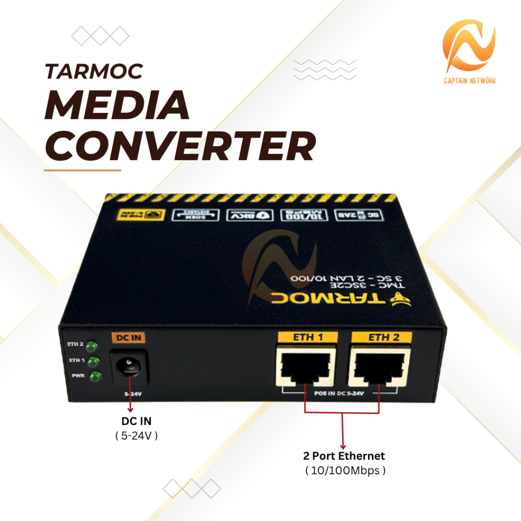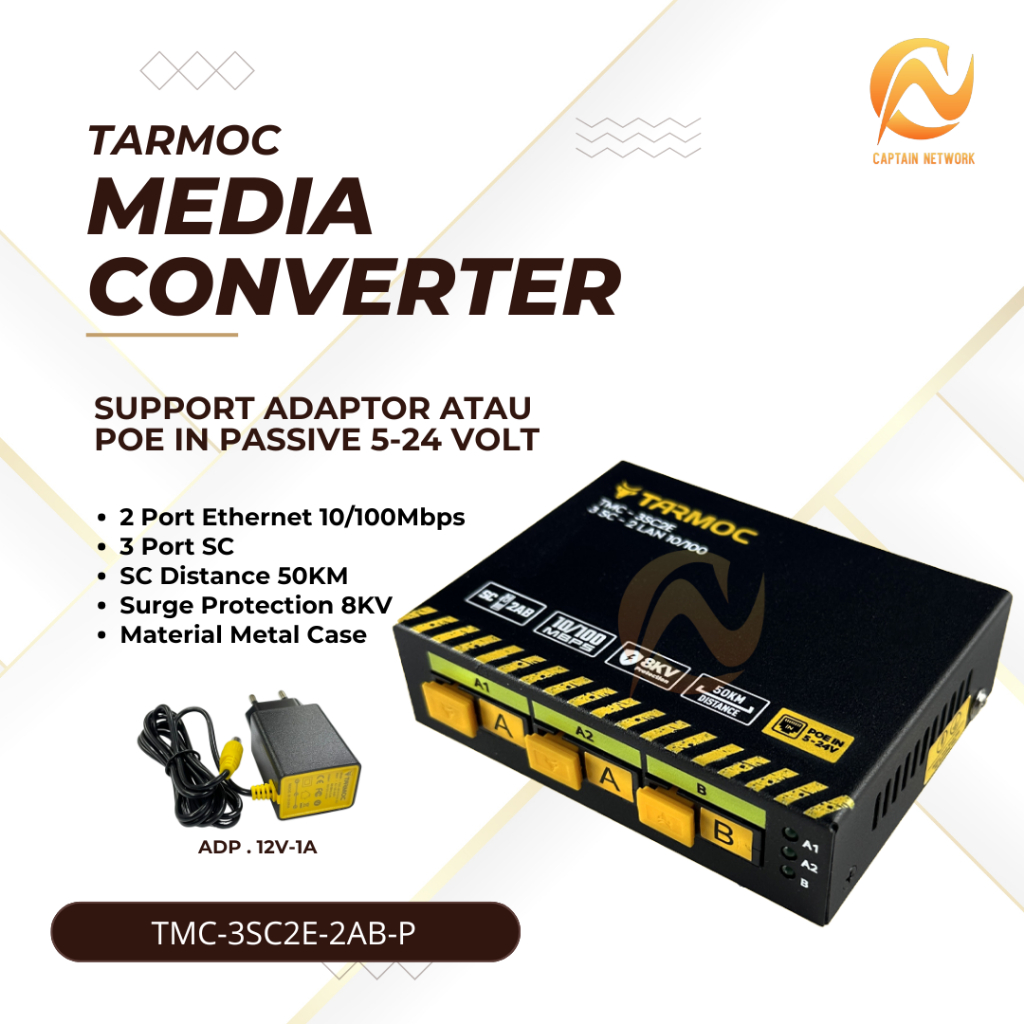 Tarmoc TMC-3SC2E-2AB-P | Media Converter Switch 3SC 2LAN / 3 SC 2 LAN 10/100Mbps POE IN 5-24 Volt | 3FO 2LAN / 3 FO 2 LAN 10/100 Mbps