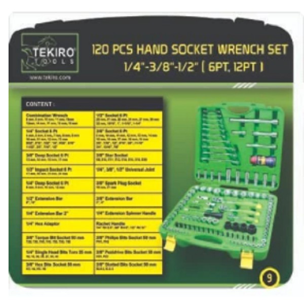 TEKIRO 1/4 INCH - 3/8 INCH - 1/2 INCH SOCKET SET 12 PT 120 PCS /KUNCI SOCK SET / SOCKET SET