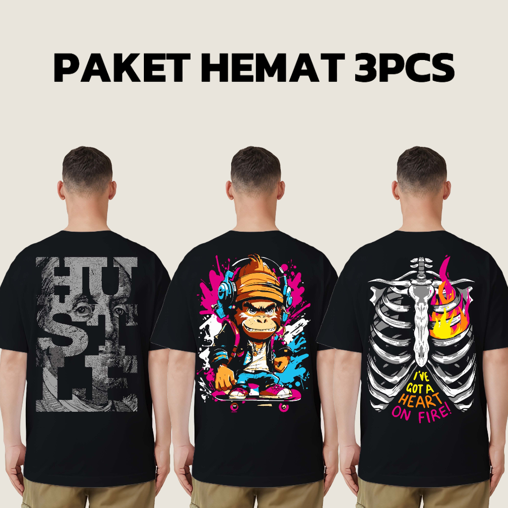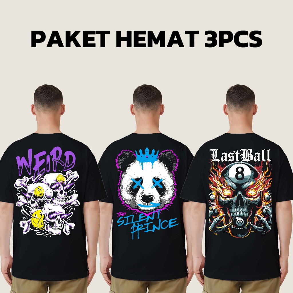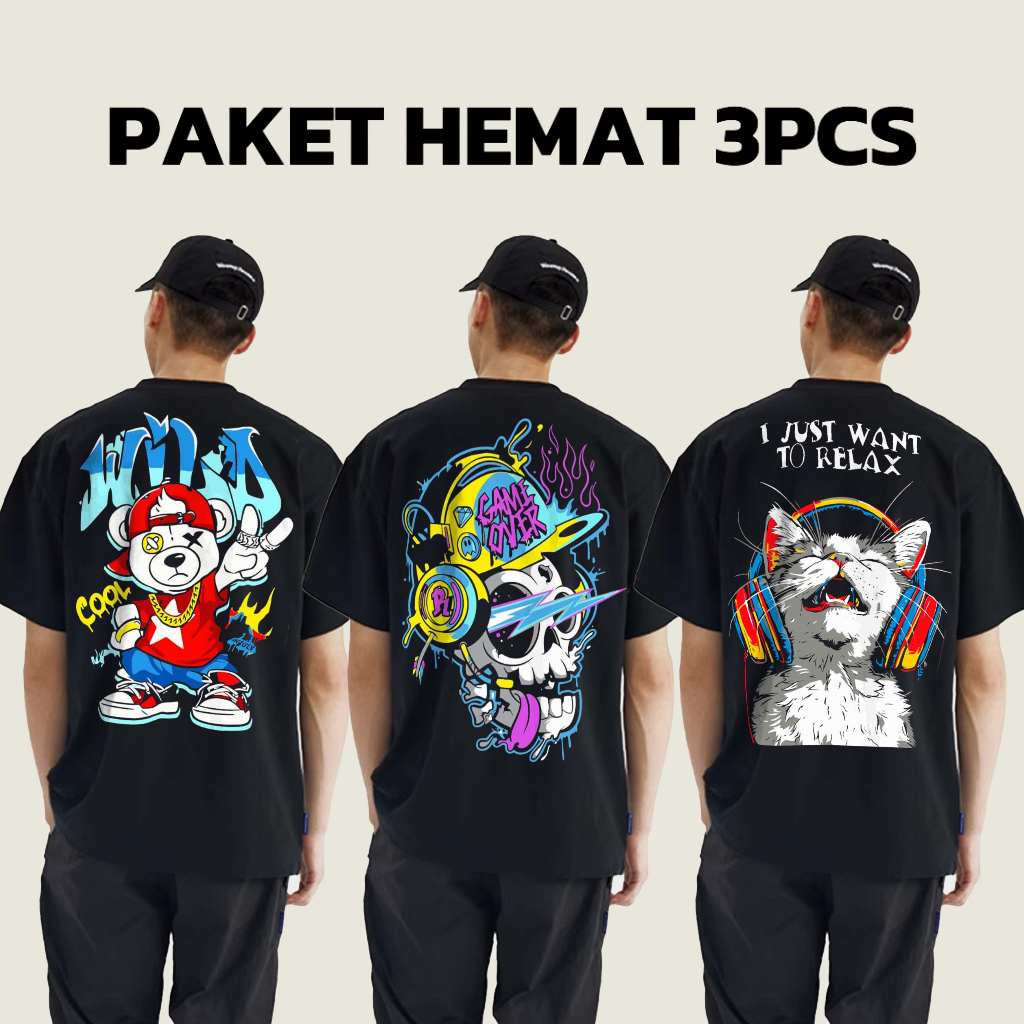 Baju kaos pria paket hemat 3pcs gambar Kece tshirt Bahan cotton combed 30s t-shirt paket hemat Motif