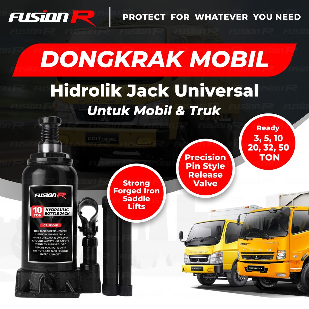 Fusion R Dongkrak Mobil 10 Ton Hidrolik Hydraulic Jack Truk, Mobil Model BOTOL