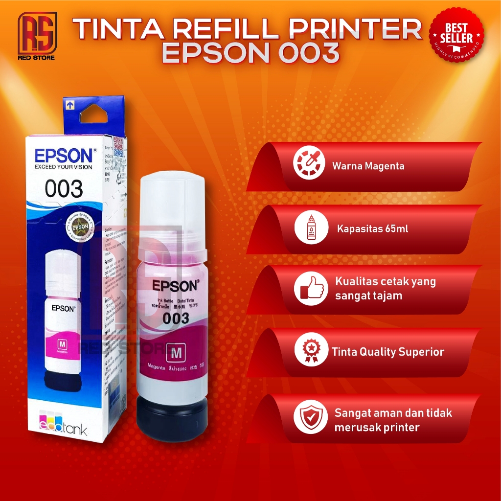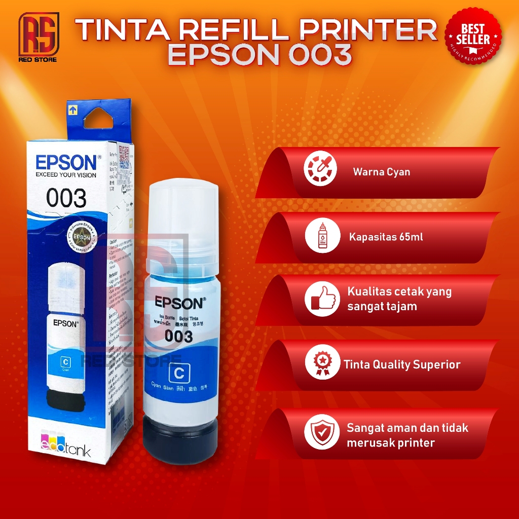 1 Paket Isi 4 Tinta Epson 003 Untuk Tipe Printer L1110 L3101 L3110 L3150 L5190 L3210 L3250 L5290 Cetak Tajam, Irit, Gak Bikin Ribet