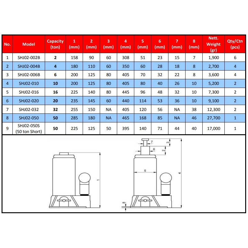 Hydraulic Bottle Jack / Dongkrak Botol 6 Ton Sakura SHJ02-006B