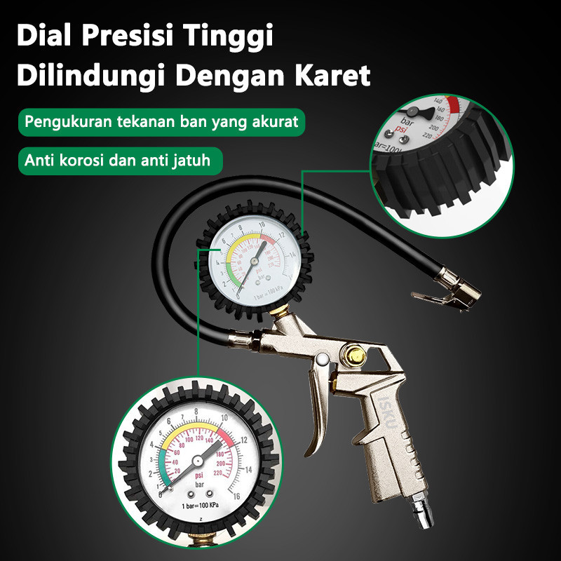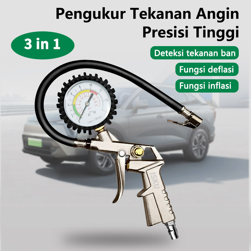 Isku Alat Isi Ukur Angin Tire Pressure Gauge Inflator 3 In 1 Pengukur Tekanan Angin Presisi Tinggi