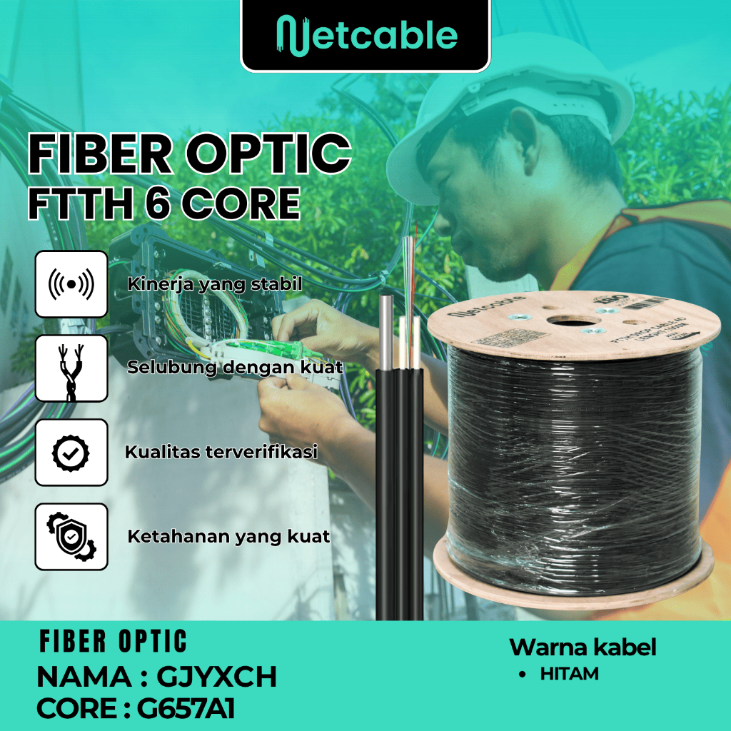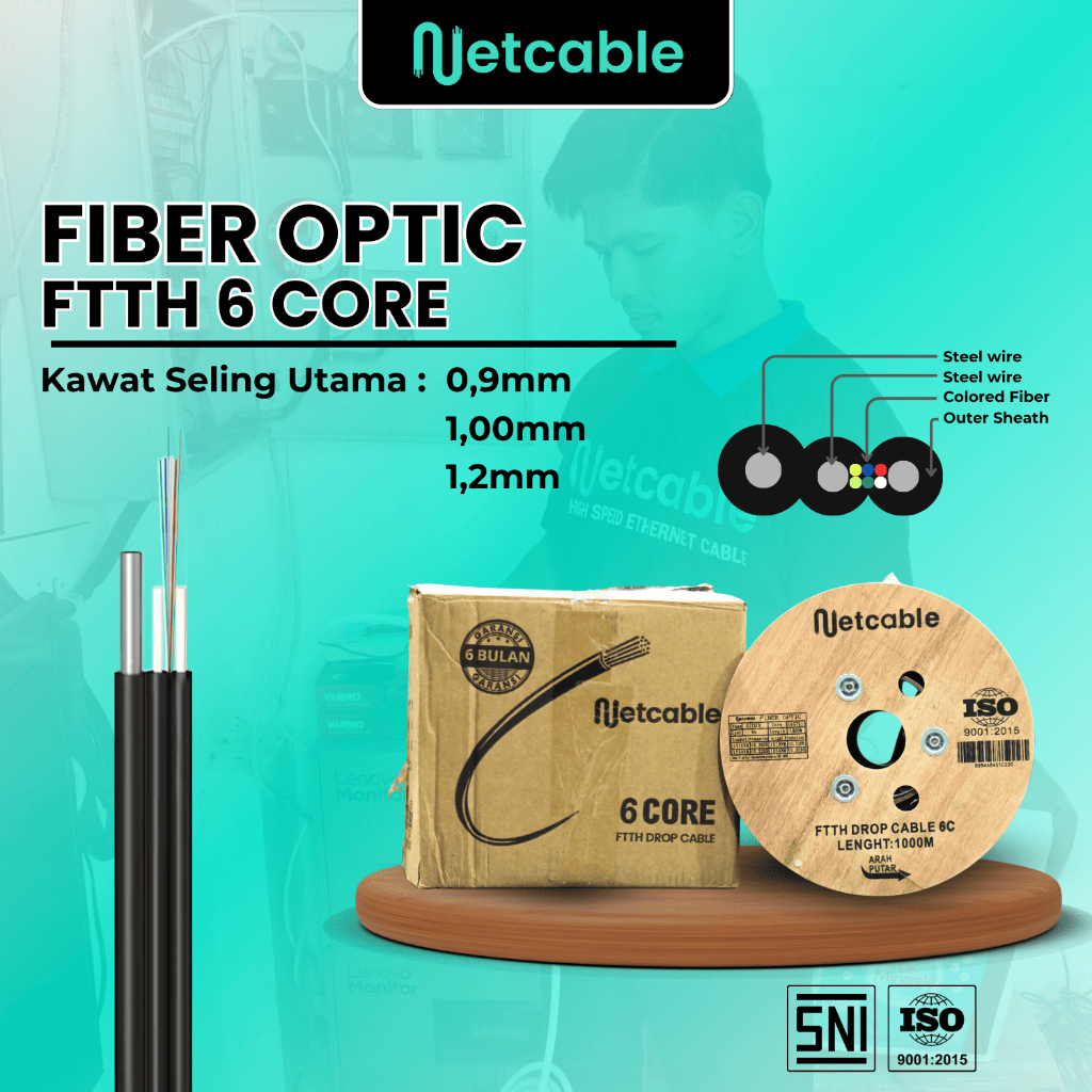 NETCABLE Kabel Fiber Optik Dropcore 6 Core 3 Seling 1km | Stabil Jaringan Kuat FTTH | 1000 meter