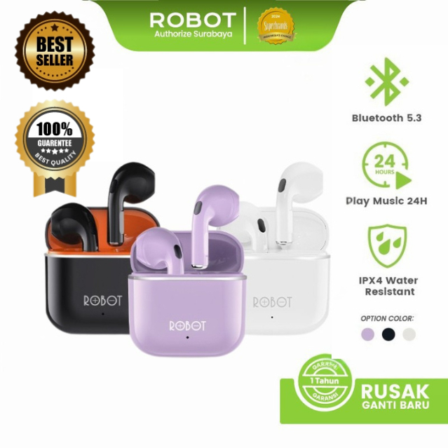 Robot Headset Bluetooth TWS Wireless Earphone Airbuds / TWS Bluetooth / TWS ROBOT T50S Original BT 5.3 True Wireless Headset Bluetooth