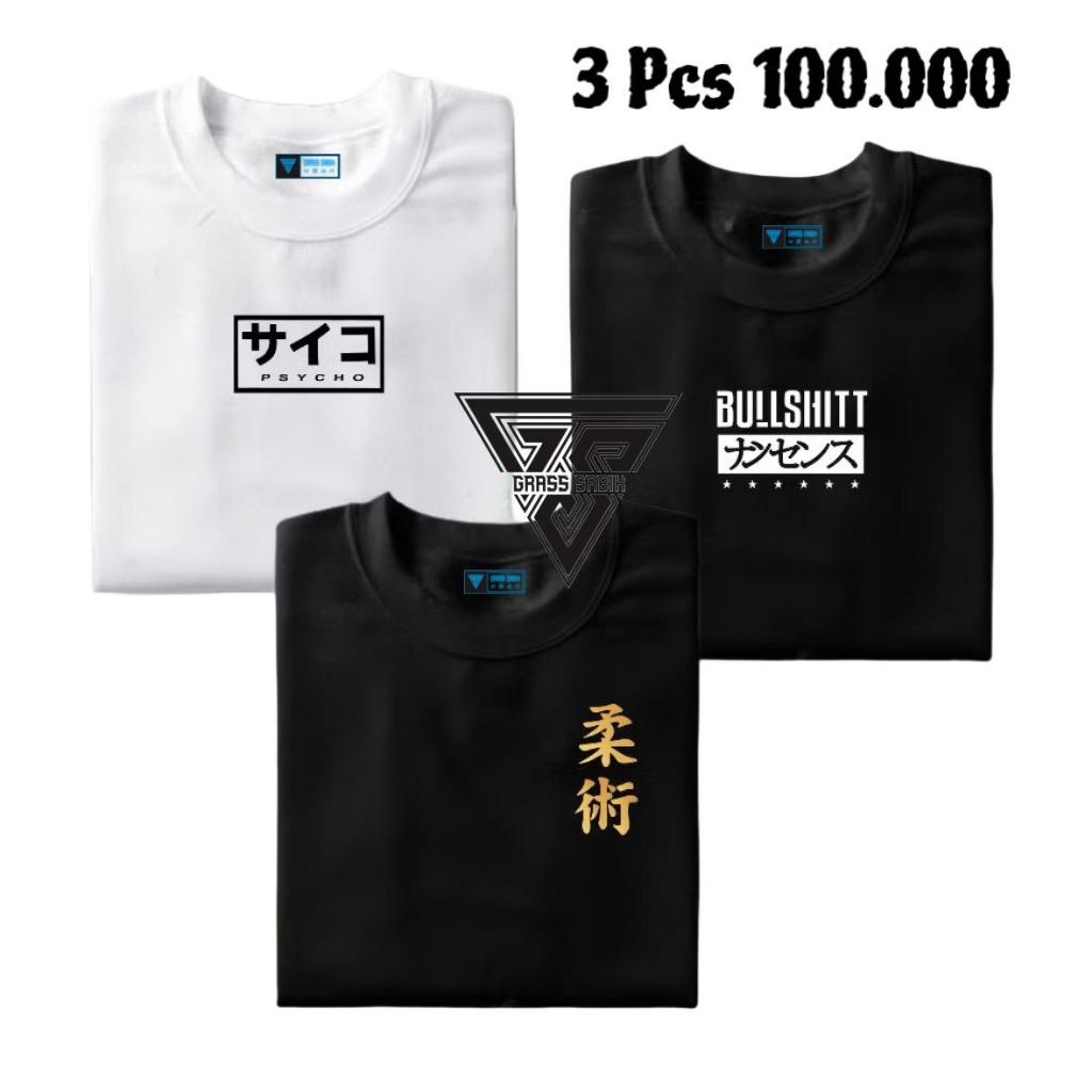 Grass Sabik - 1 Paket Isi 3 Pcs Kaos Distro Motif Tulisan Jepang Kaos Santai Baju Premium Unisex