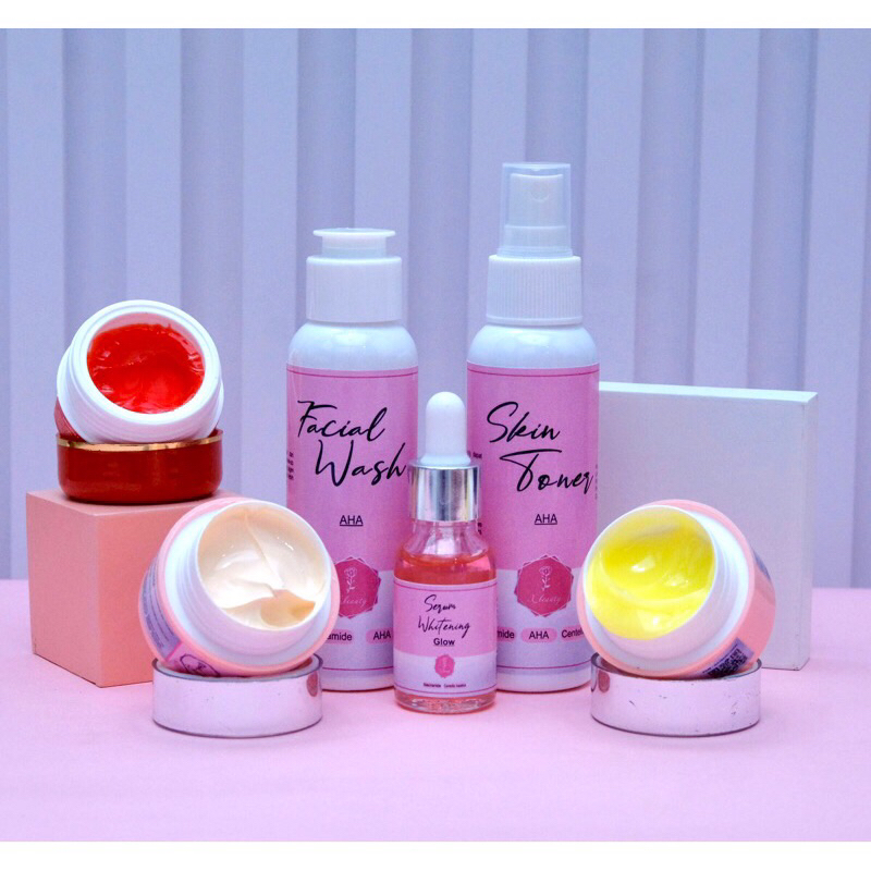 1 pkt isi 6 day pech, serum, night cream, toner, fal wash, 1 pkt isi 5 day pech, 1 pkt isi 6 day pink, 1 pkt isi 5 day pink