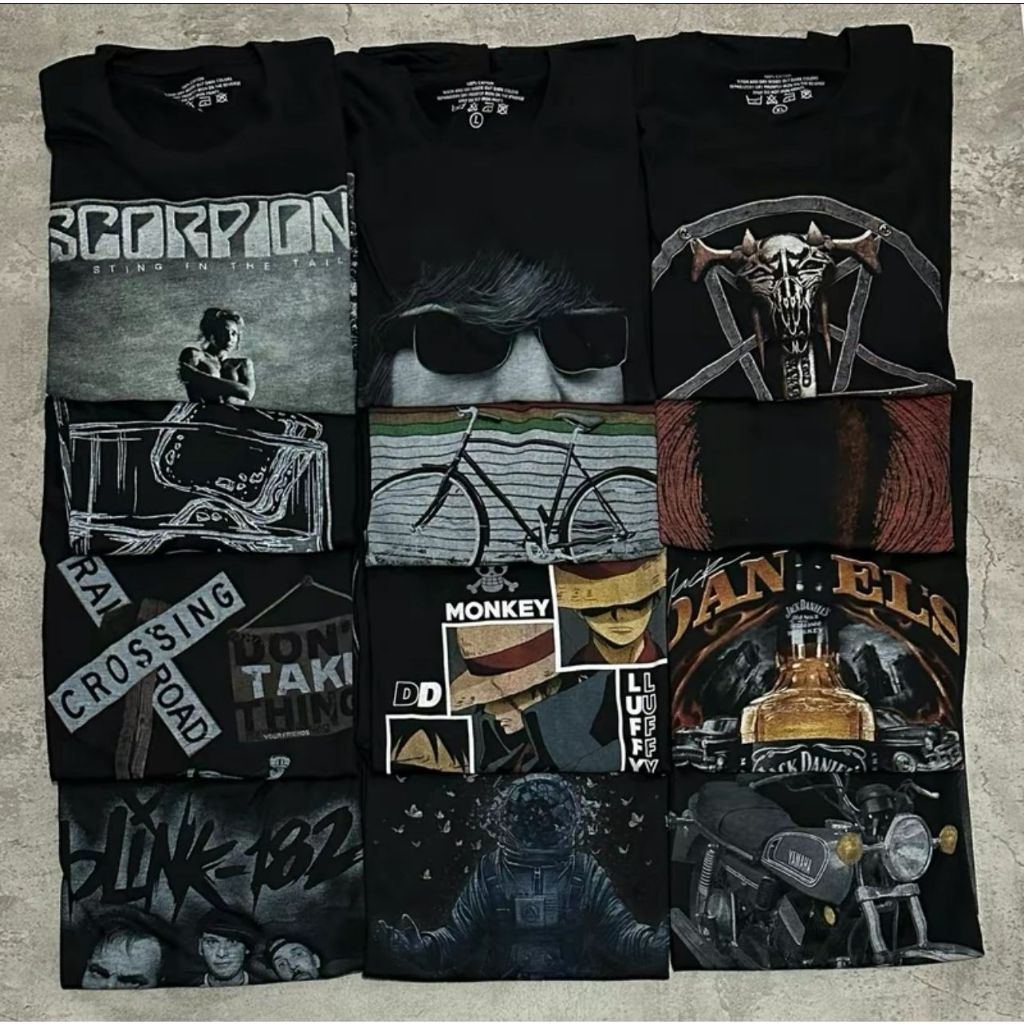 4 PCS 100RIBU KAOS DISTRO BAND & NON BAND PAKET MURAH SEMI KATUN / KAOS DISTRO KHUSUS HITAM