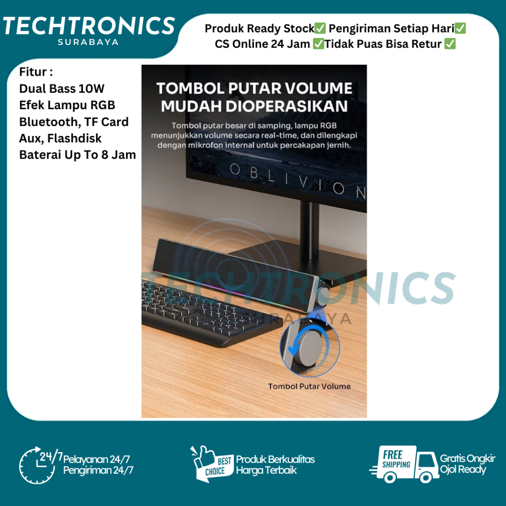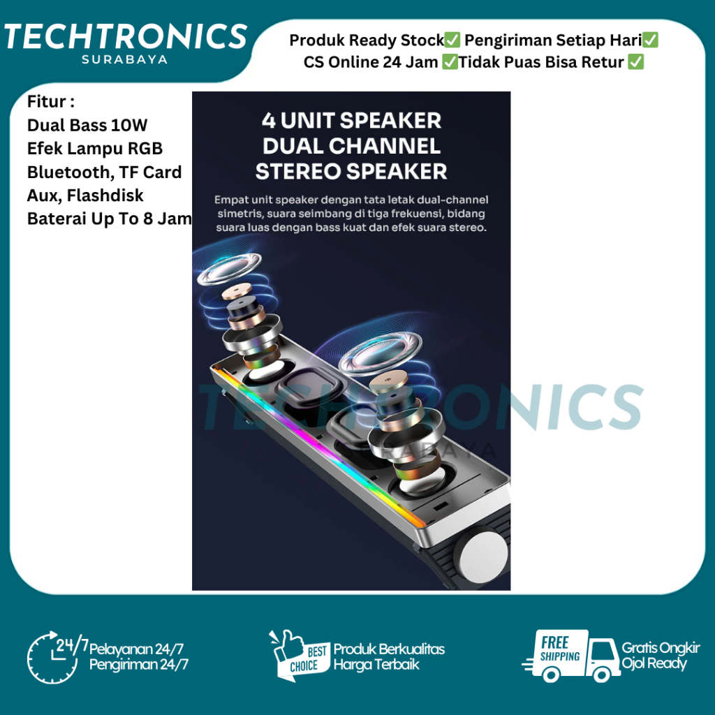 ROBOT RB680 Speaker Bluetooth ORIGINAL Rgb Lightshow Soundbar Speaker 10W Subwoofer