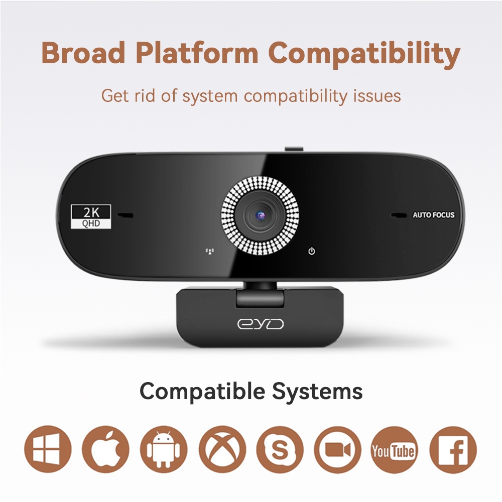 EYD HD 2k PC Webcam Laptop USB Camera with 360° Degree Rotation and Microphone Autofocus Live Webcam Conference Camera PC02
