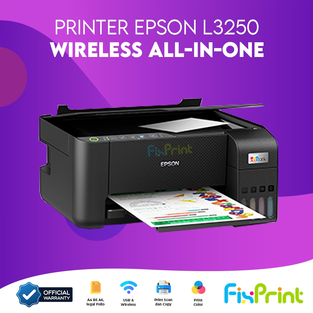 Printer Eco Tank L3210 / L3216 / L3211 Print Scan Copy AIO Multifungsi EcoTank L3250 / L3256 / L3251 All In One Multifunction Wireless A4 Bergaransi New