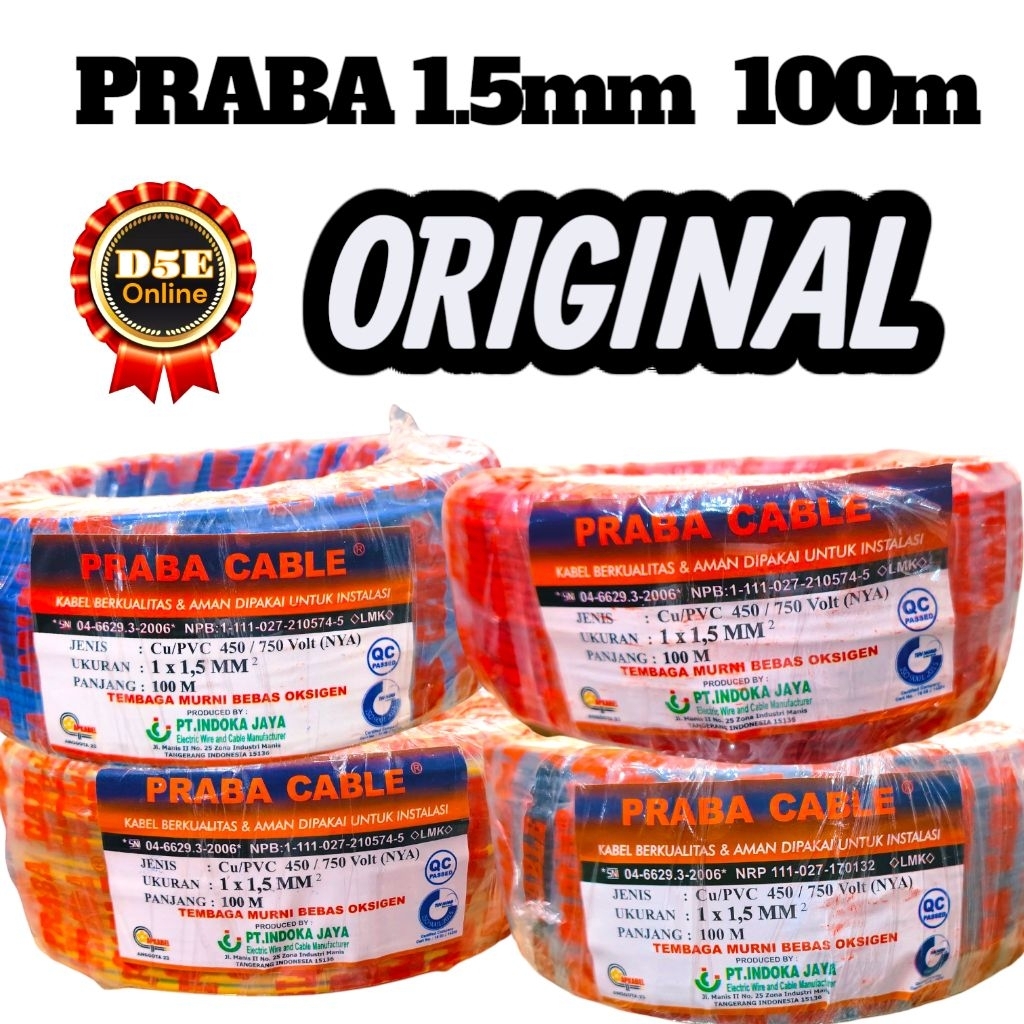 Praba kabel NYA 1.5mm 100 meter (Merah Hitam Biru Kuning) kirim instan