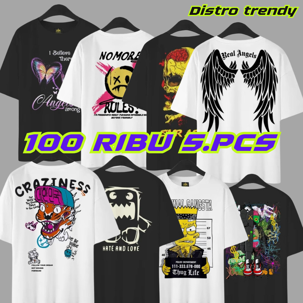 Kaos Pria murah Paket Hemat Kaos Distro 100 ribu dapat 5 pcs Trending Terbaru Paling Murah unisex