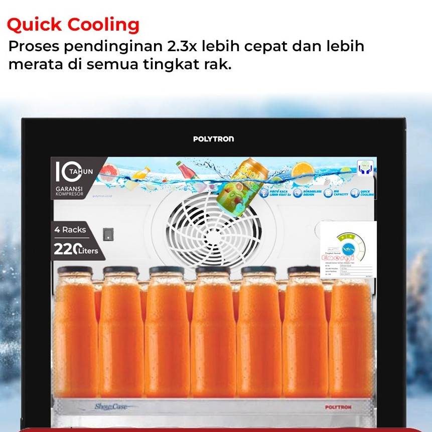 Showcase POLYTRON SCN 287 5 Rak BORDERLESS DESIGN (280L) - GARANSI RESMI