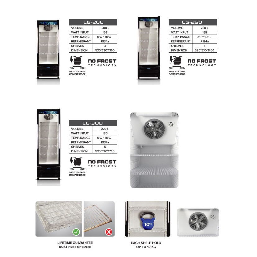 SHOWCASE STEKO LG 300 5 Rak DISPLAY COOLER KULKAS No Frost - GARANSI RESMI