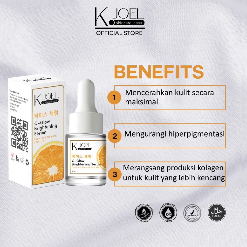 J. KJOEL Paket Bundling Brightening Day Cream + Night Cream + Toner Wajah + Serum Vit C + Fal Wash [5 in 1] - BPOM