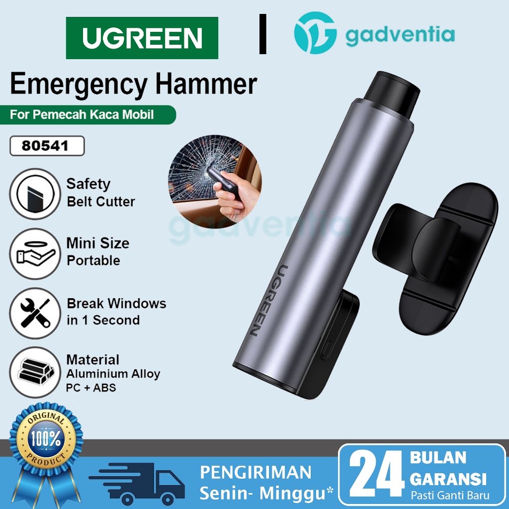 Ugreen Emergency Hammer For Vehicle With Cutter Alat Pemecah Darurat Kaca Mobil Pemotong Seat Belt