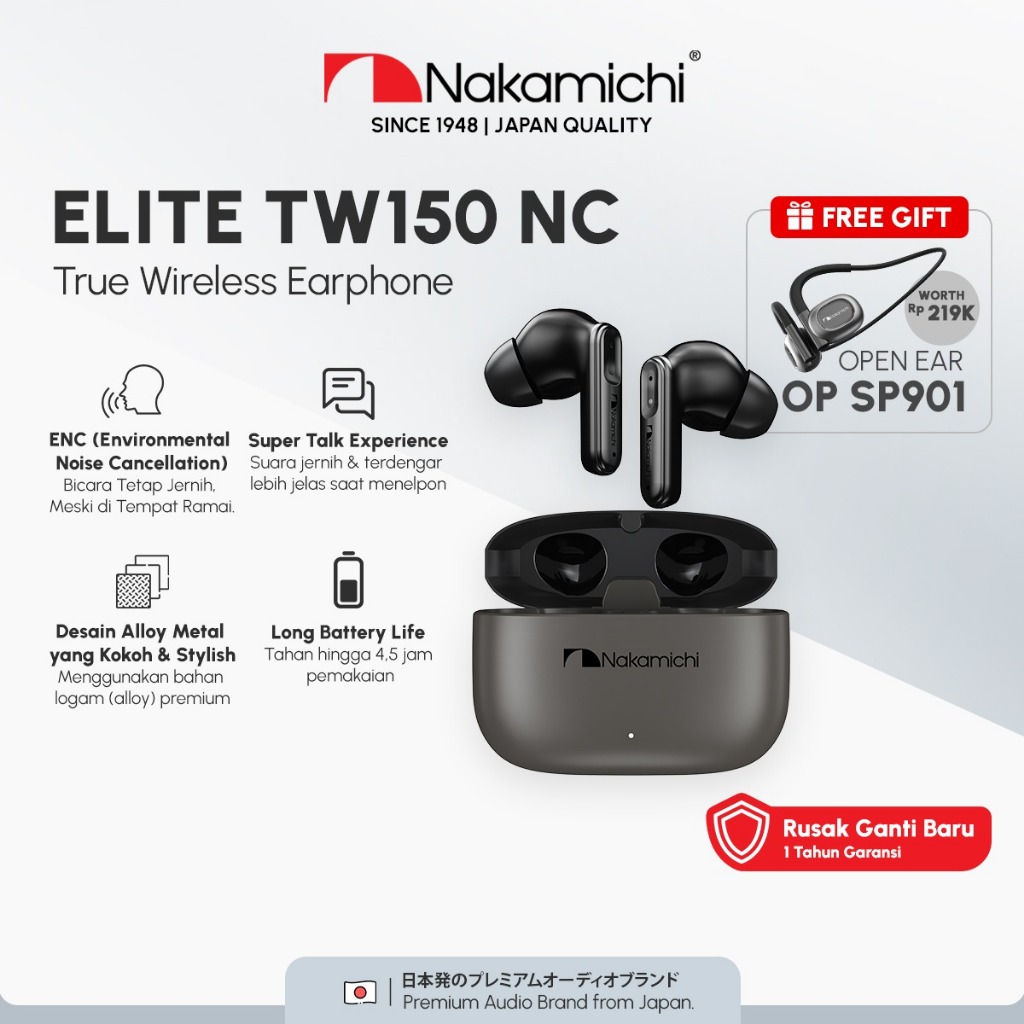 Nakamichi ELITE TW150NC TWS Earphone Full Bass Earbuds Bluetooth In Ear Gun Metal