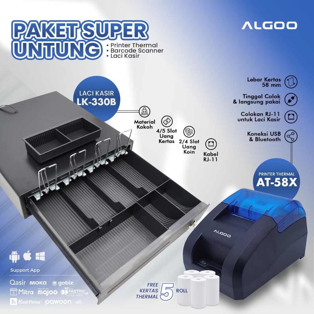 ALGOO Printer Thermal Bluetooth RJ-11 Printer Kasir Struk Nota PPOB
