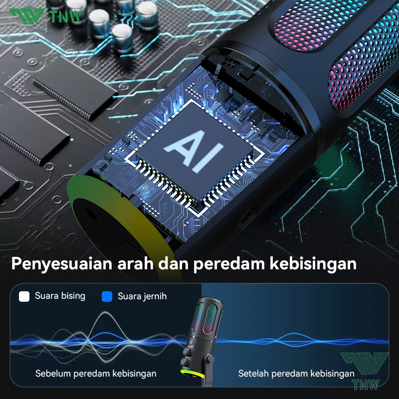 TNW K18 Microphone Condenser USB Type-C Mikrofon with RGB Dynamic Mic for PC Laptop Live Streaming Gaming Recording