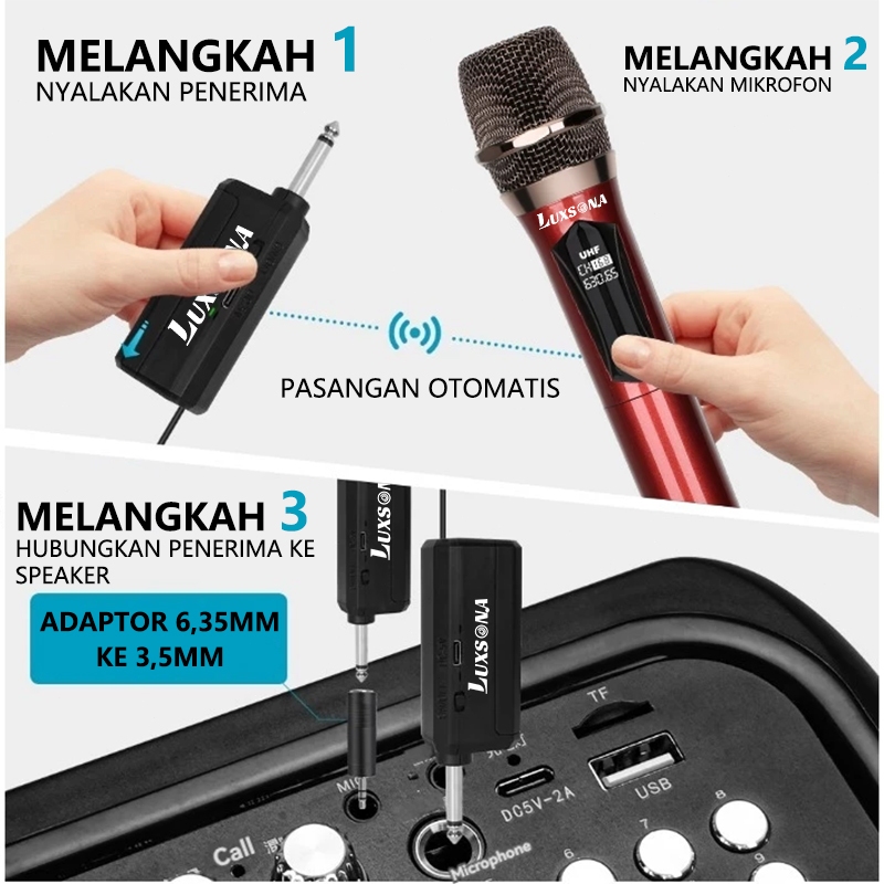 LUXSONA Mikrofon Nirkabel/Mikrofon Karaoke Ganda/Mic Karaoke Wireless Asli Profesional Murah/Mikropon Karaoke Genggam isi ulang