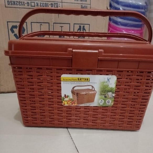Keranjang Serbaguna Dengan Tutup Keranjang Plastik/ Keranjang Piknik Rattan / Keranjang Peyimpanan Makanan Keranjang Kenduri